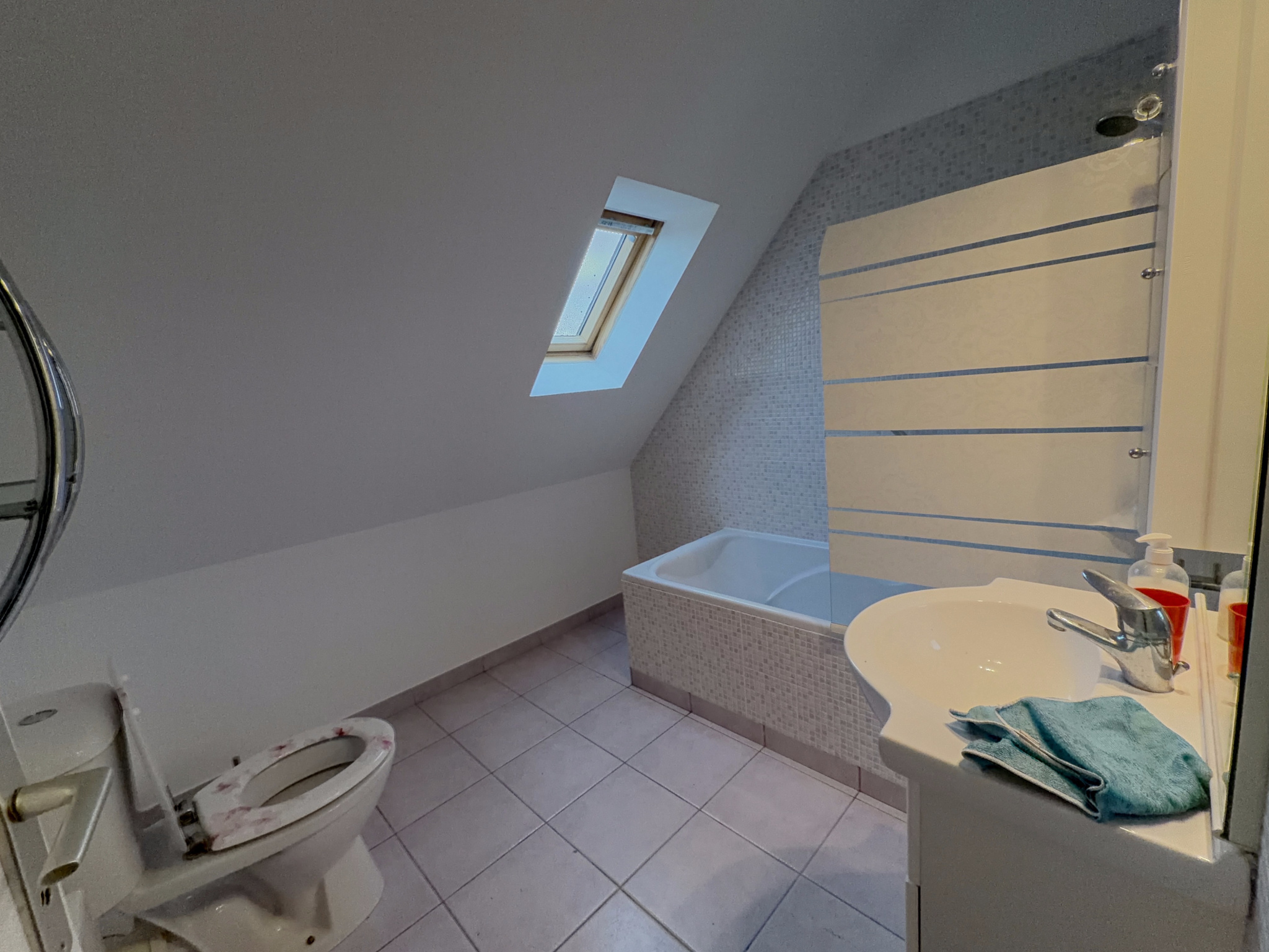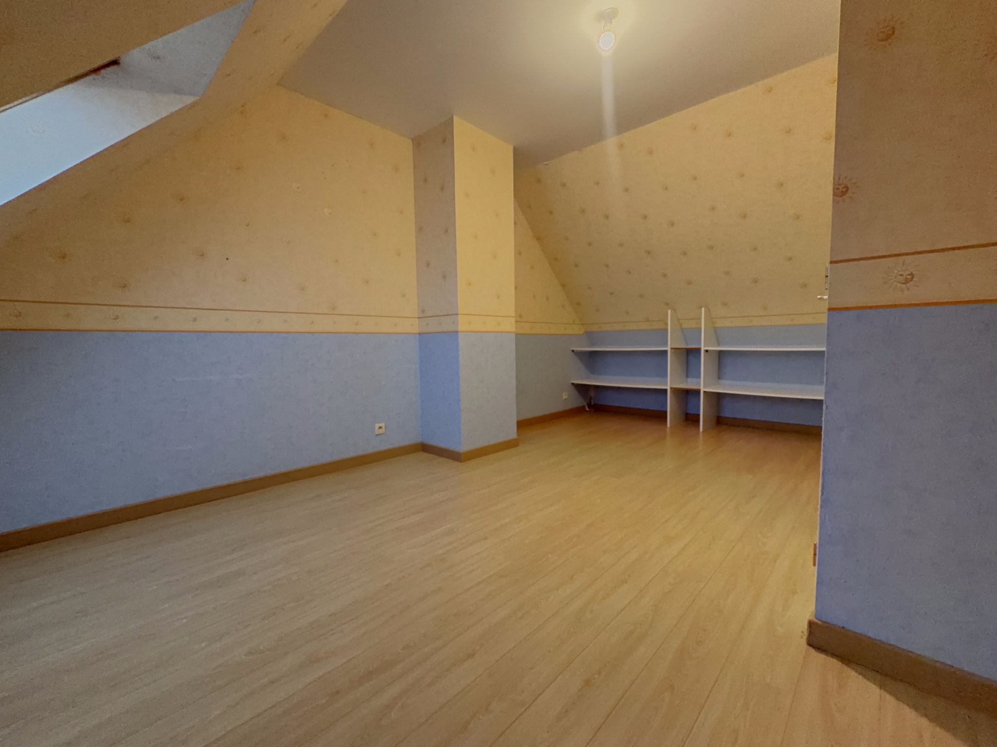 À l'étage : deux belles chambres avec placards, une salle de bains avec WC.