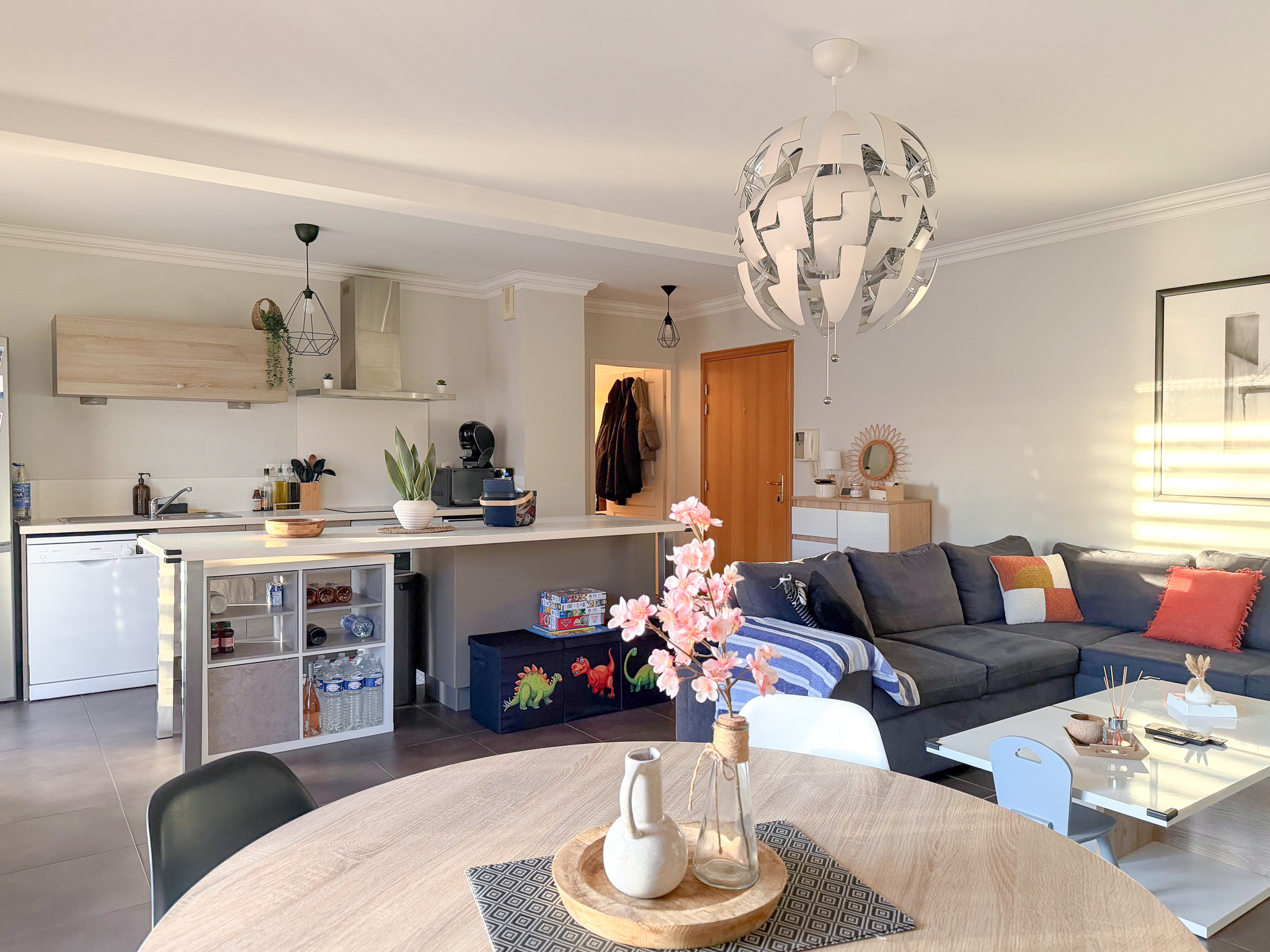 Cuisine ouverte sur salon , trois chambres , salle d'eau et wc séparé.