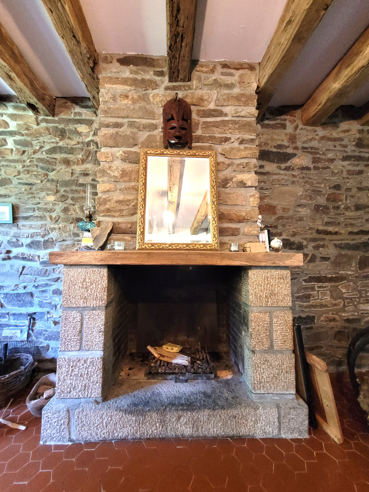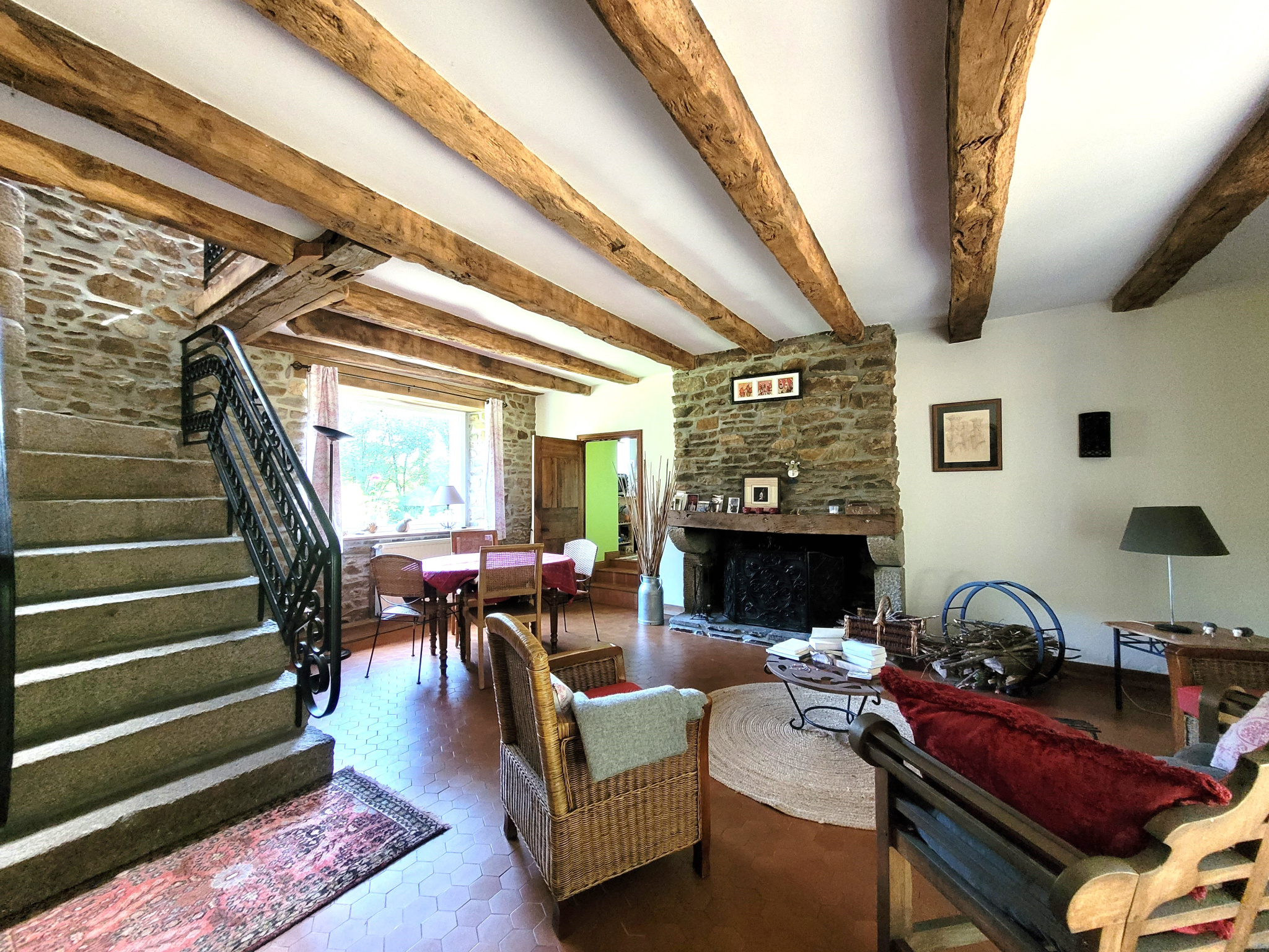 À l'étage, une bibliothèque cosy avec cheminée, trois chambres, une salle d'eau avec wc.