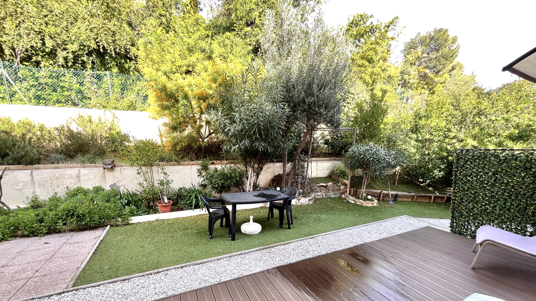 Le jardin, d'environ 100 m2, offre une configuration harmonieuse permettant de créer différents univers : coin repas, espace détente, aire végétalisée... Un cadre intime et paisible, à l'abri des nuisances, idéal pour profiter pleinement du climat méditerranéen.