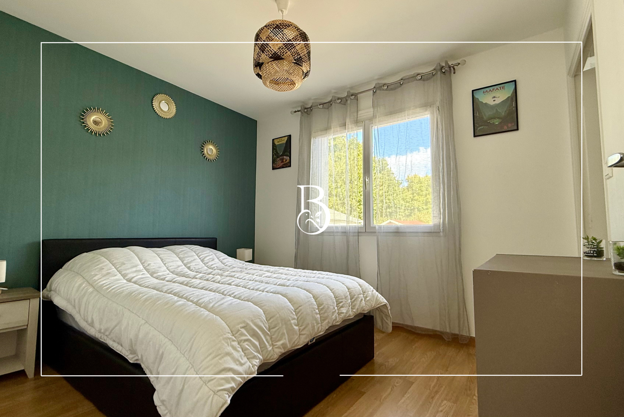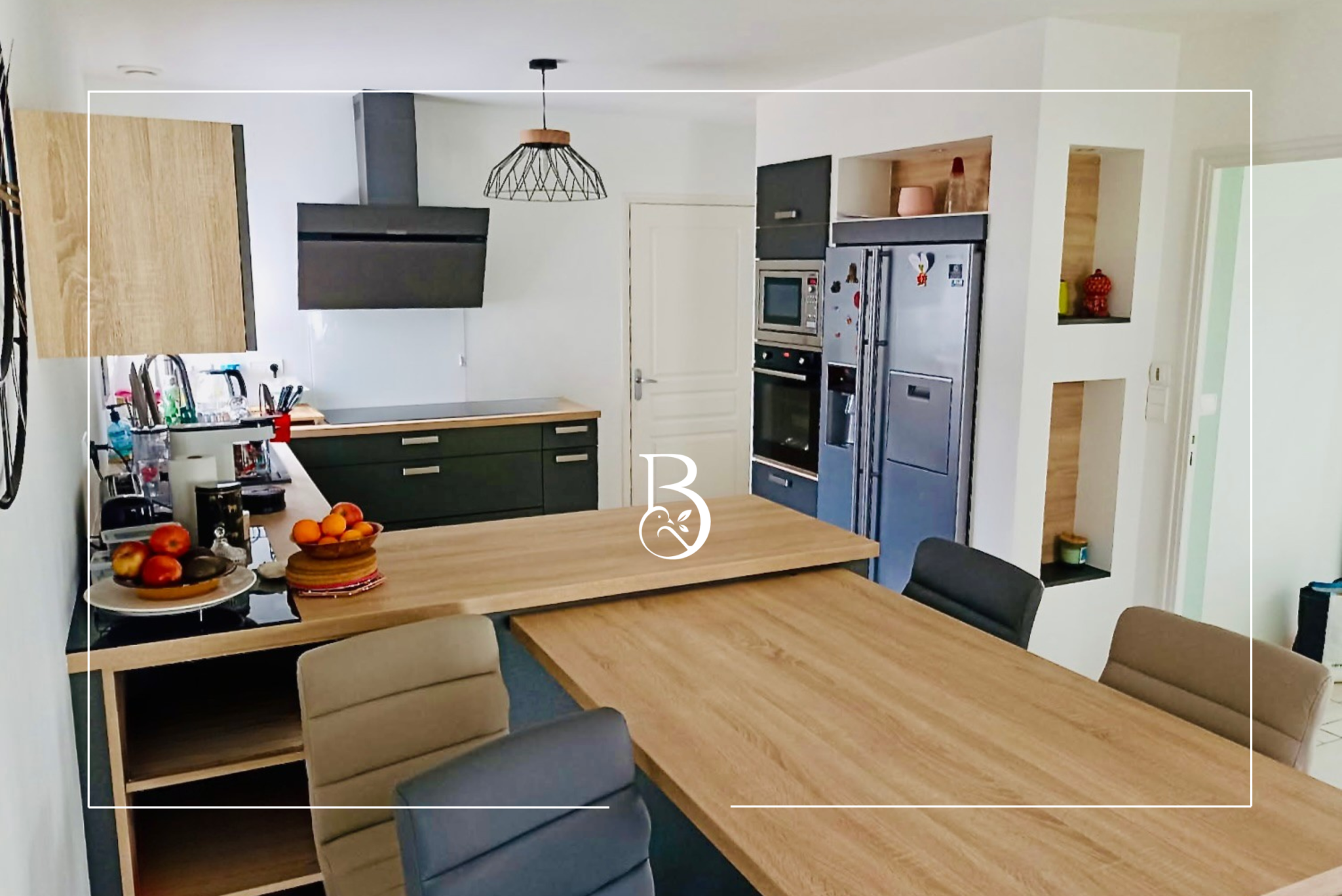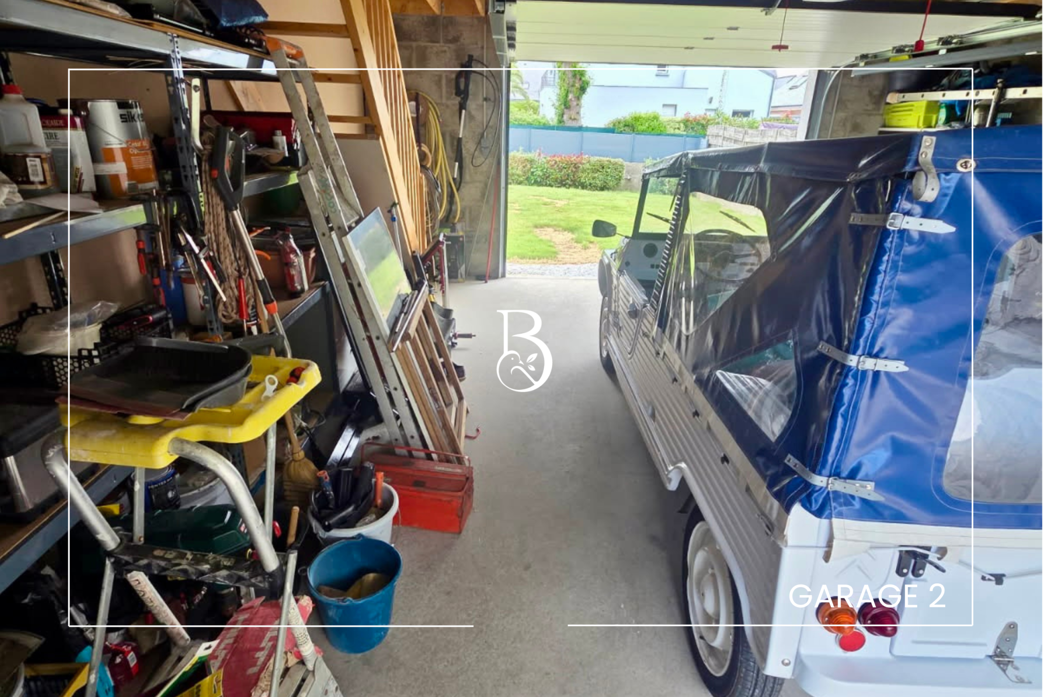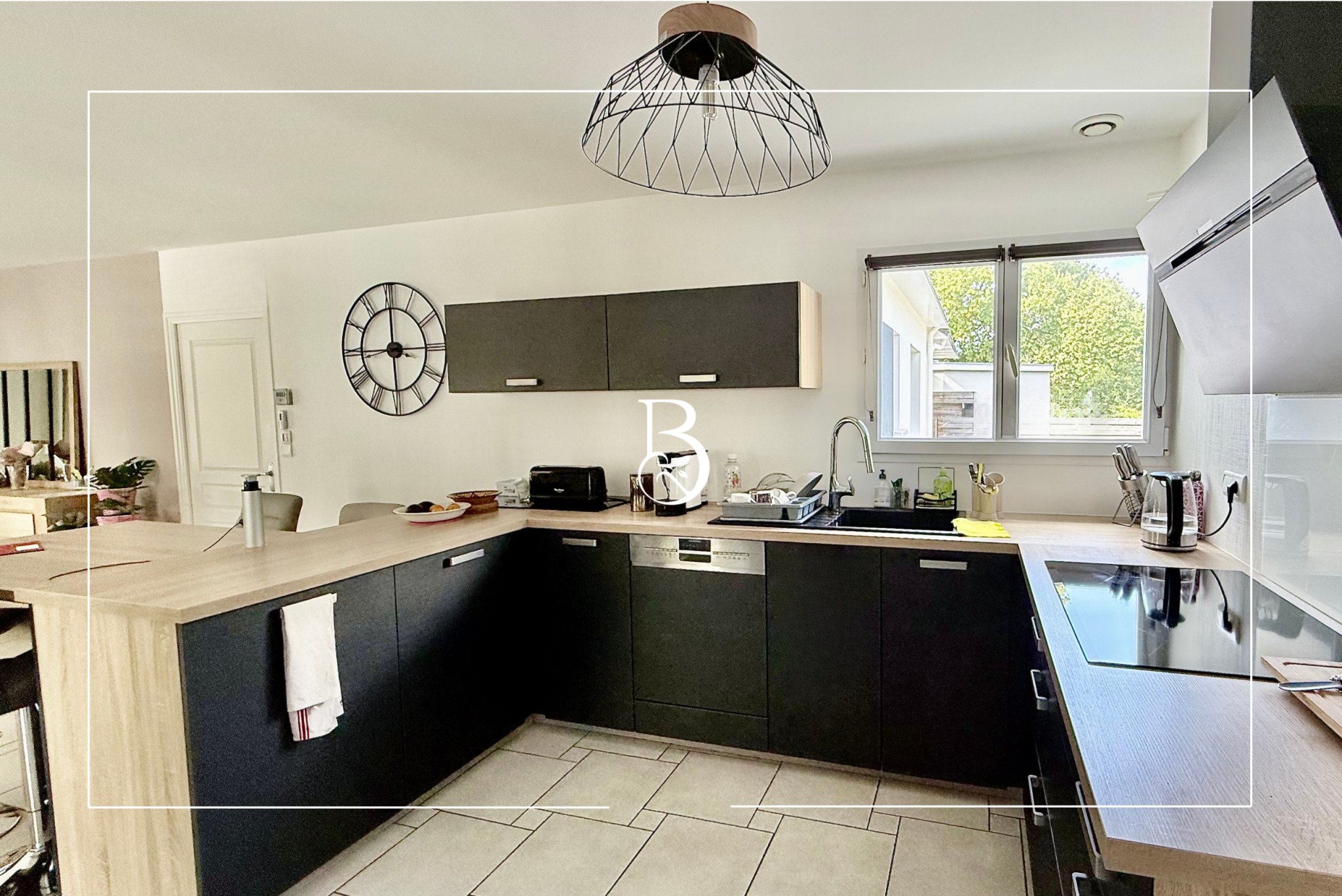 Plain-pied confortable avec 3 chambres au rez-de-chaussée, une pièce de vie généreuse et lumineuse, cuisine ouverte, buanderie, véranda tournée vers le jardin. Deux garages pour stationner, stocker, bricoler.