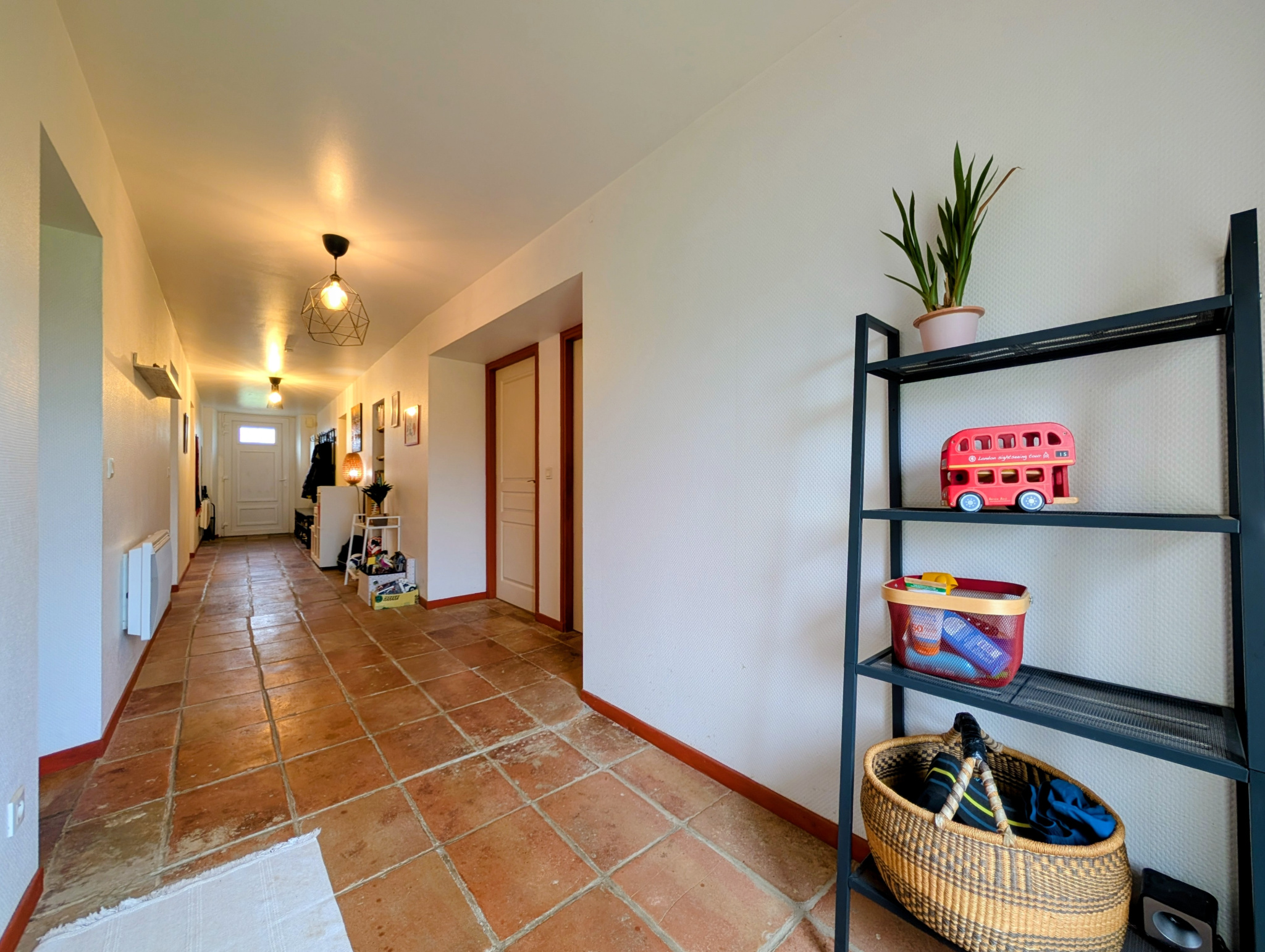Dès l'entrée, vous découvrirez un vaste dégagement desservant une pièce de vie lumineuse d'environ 60m2 avec cuisine ouverte, parfaitement pensée pour les moments de convivialité. En plain-pied, la partie nuit se compose de 4 chambres spacieuses, dont une suite parentale, un espace bureau ainsi que d'une salle d'eau et WC indépendants.