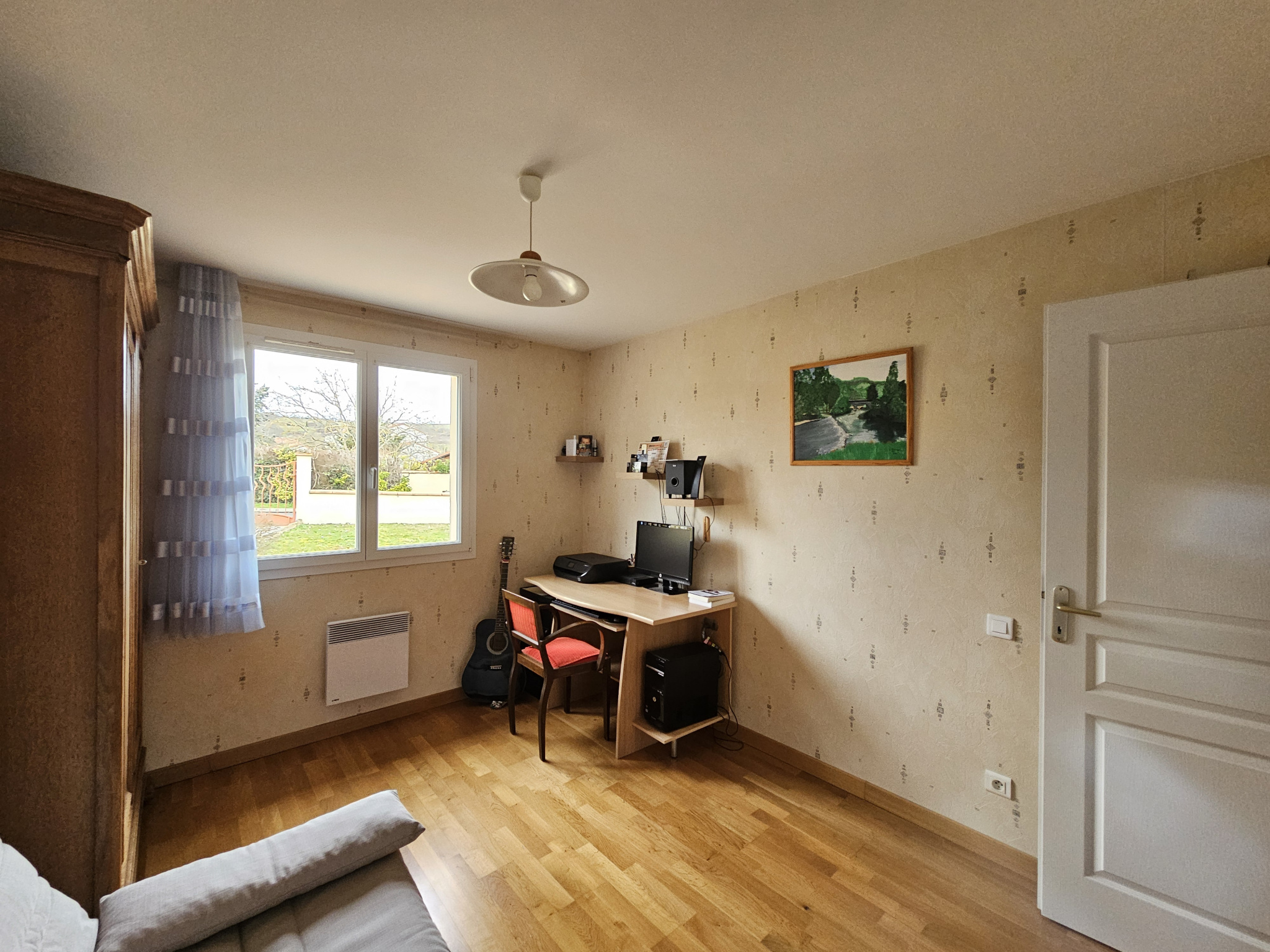 Dès l'entrée avec rangements et dégagements, un salon de 34m2 semi ouvert sur une cuisine de plus de 10m2 offre un espace de vie de plus de 44m2 chaleureux et lumineux, avec pompe à chaleur réversible, chauffage au sol et poêle à bois. Du salon, vous aurez accès à une terrasse à l'ouest de 15m2 et une grande terrasse exposée Sud-est de 30m2 donne sur le salon et la cuisine. Un petit couloir nuit avec penderie dessert ensuite trois chambres de 9, 11 et 12m2, une salle de douche de plus de 7m2 et un WC séparé.