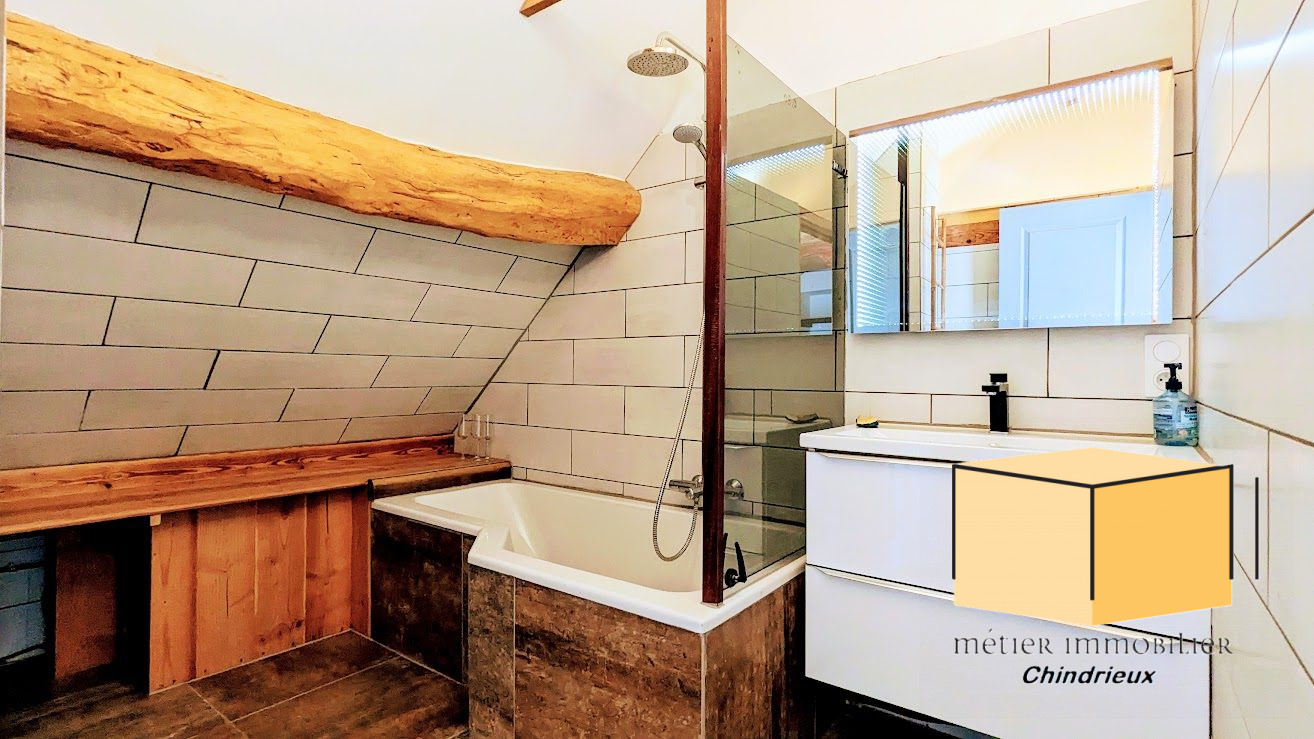 Sur la commune de Ruffieux, maison mitoyenne des deux côtés, d'environ 136 habitables dont 238m2 utiles.