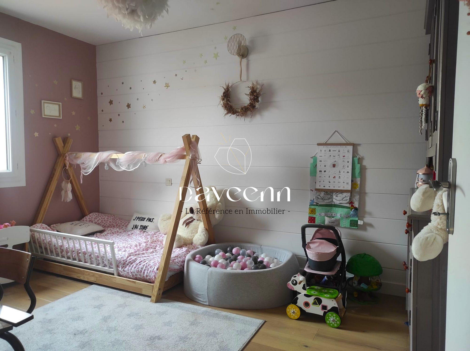 Exclusivité Daveenn Immobilier ! Idéalement située à seulement 800 m de la gare de Sainte-Anne-d'Auray et à 20 minutes à pied du port de Saint-Goustan, cette maison offre un cadre de vie recherché. Elle se compose d'une spacieuse pièce de vie de 48m² avec cheminée, parfaite pour les moments de convivialité, ainsi que d'une cuisine moderne, aménagée et équipée de 24 m². Le rez-de-chaussée accueille deux chambres, dont une suite parentale, offrant le confort de la vie de plain-pied. À l'étage, vous découvrirez une grande mezzanine de 14 m², trois chambres supplémentaires, ainsi qu'une salle d'eau avec WC. Un garage attenant, complété par un carport. [Jardin en cours] Contactez votre référente DAVEENN, Julie au 07 59 78 53 87