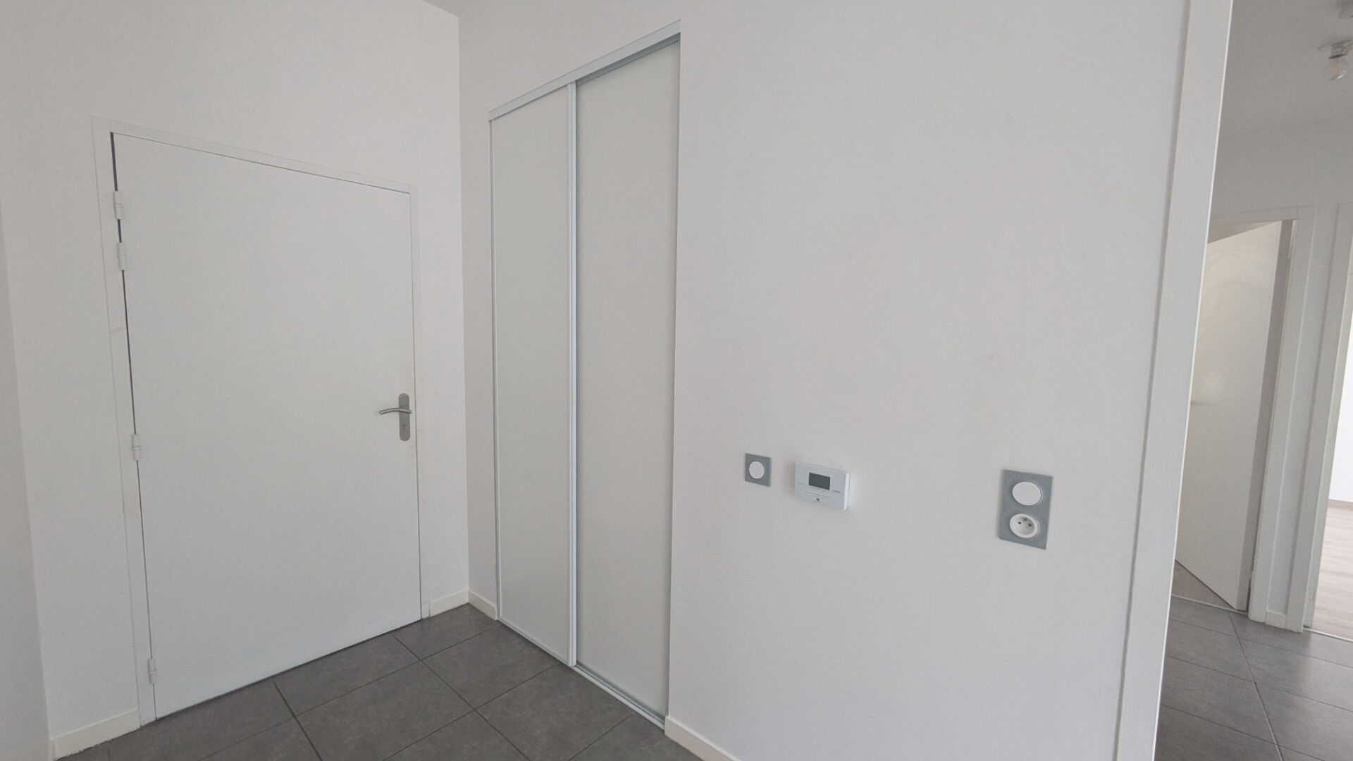 Il se compose d'une entrée avec placard, d'un spacieux séjour lumineux avec cuisine ouverte aménagée, d'un cellier, d'un WC indépendant, d'un dégagement, de deux chambres avec placards et d'une salle d'eau.