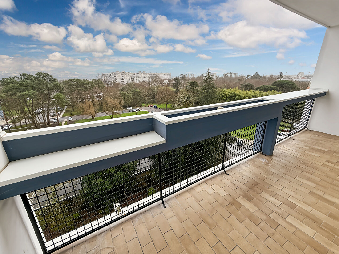 Quartier Capeyron. Appartement traversant de type 3 d'environ 61m² situé au huitième étage. Composé d'une entrée, d'un séjour ouvert sur balcon, d'une cuisine indépendante avec accès au balcon, de deux chambres, d'une salle d'eau, d'un WC indépendant ainsi qu'un cellier intégré à l'appartement. Proximité commerces, tram A, transports et écoles. Idéal résidence principale ou investisseurs.
