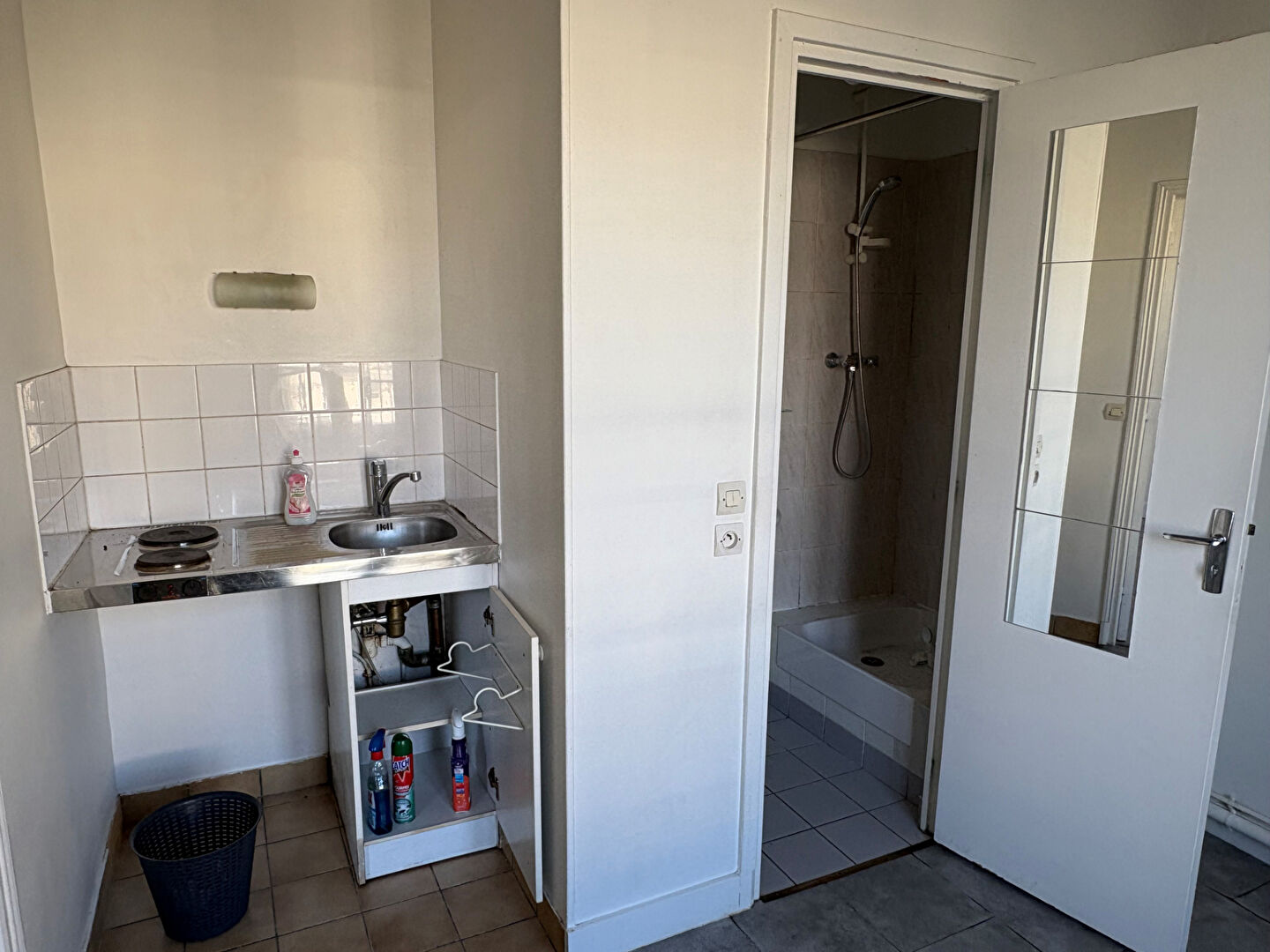 AU 6ème et dernier étage avec ascenseur d'un bel immeuble ancien, studio composé d'une pièce principale et d'un 2ème espace de vie avec coin cuisine, salle d'eau avec WC Sani-broyeur