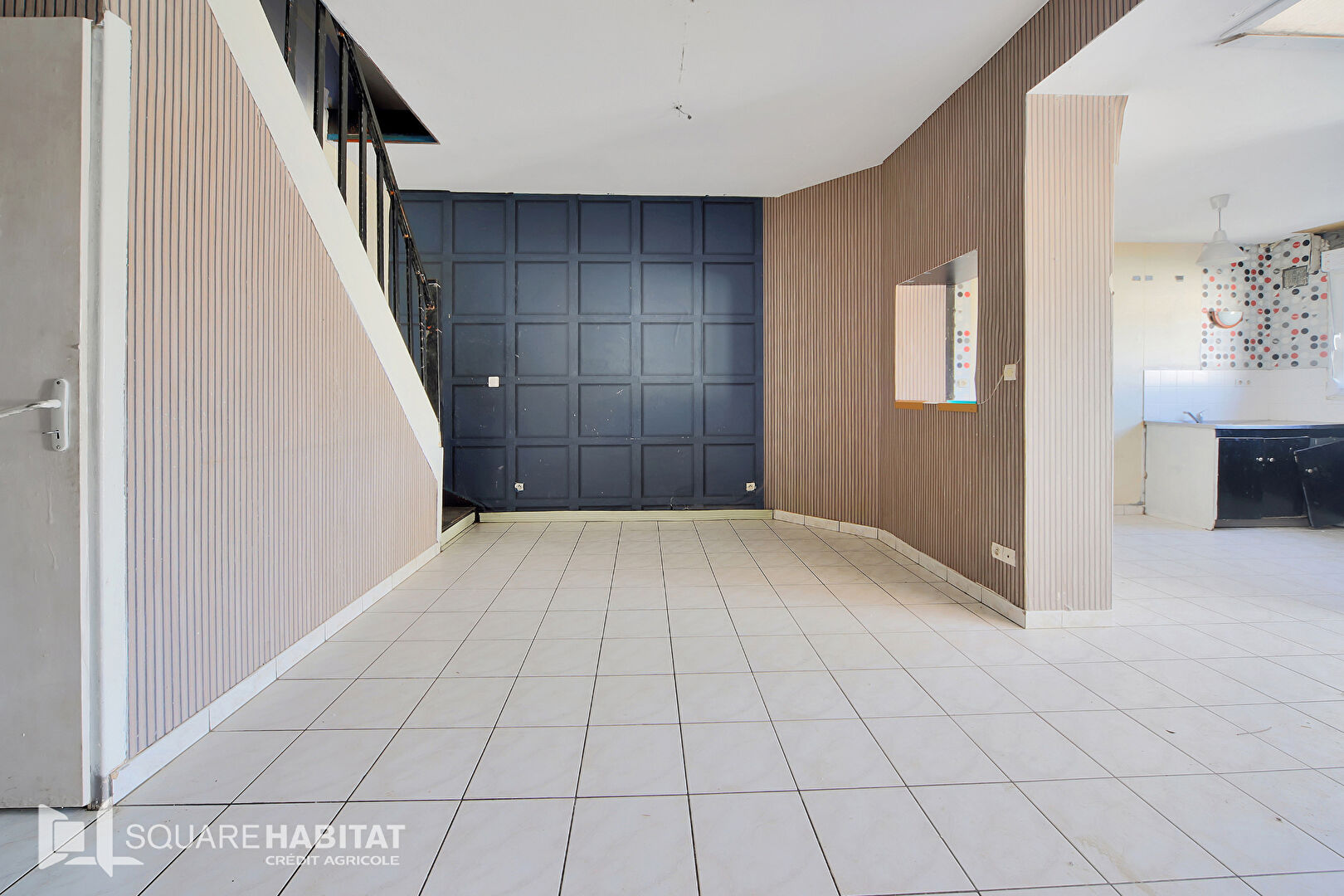 -Au rez-de-chaussée : une entrée, un coin salon, un espace salle à manger ouvert sur la cuisine.