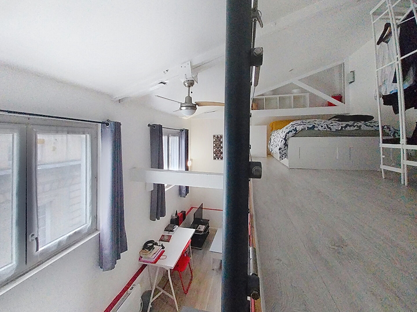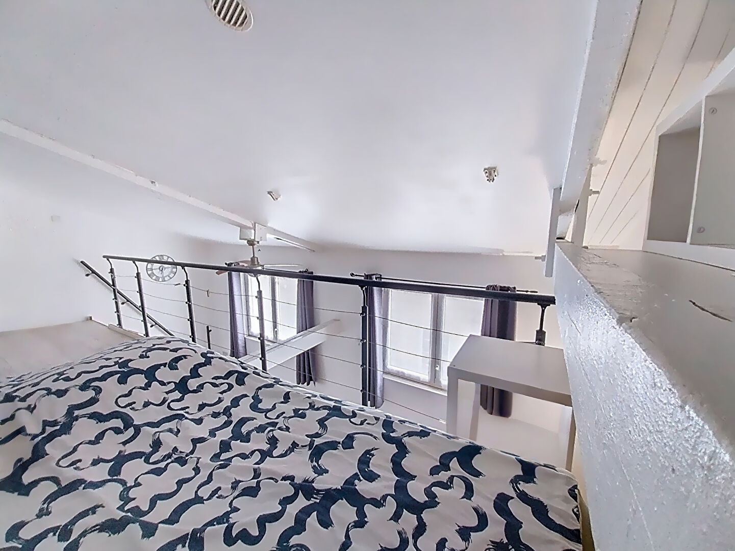 Cuisine équipée, ouverte sur le salon exposé Ouest et sans vis à vis. Salle d'eau avec lave linge et sèche linge en mezzanine une belle chambre avec rangements.