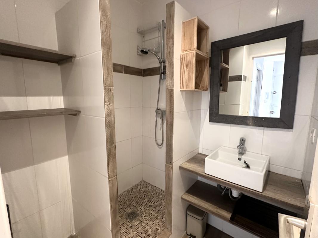 L'appartement propose un séjour lumineux avec cuisine américaine, deux chambres de taille optimisée, une salle d'eau et des toilettes séparées. À rafraîchir, il offre un beau potentiel de revalorisation pour qui souhaite créer un intérieur à son image.