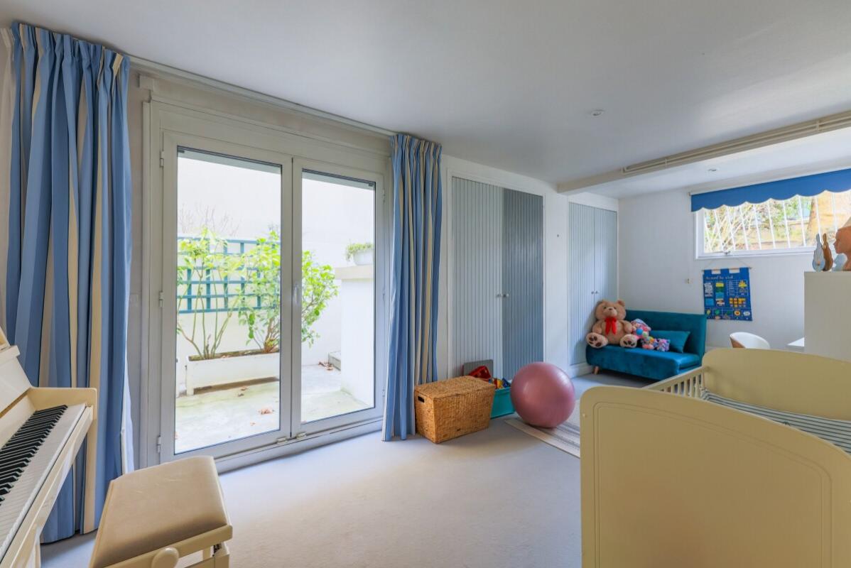 Idéalement situé, à quelques pas du bois de Boulogne, de Dupanloup et de Roland-Garros, au calme d'une voie privée, ce duplex traversant familial d'une surface Carrez de 169 m² est situé au rez-de-chaussée surélevé d'une résidence arborée des années 60 sécurisée et gardiennée.