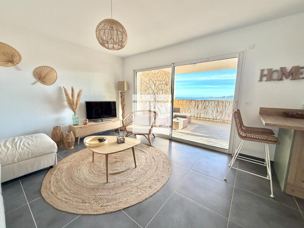 Vendu entièrement meublé, il offre une vue panoramique sur le golfe de Calvi. D'une superficie de 44,98 m2 loi Carrez, il se compose d'une pièce de vie ouverte sur une cuisine équipée, une chambre avec placards et une salle d'eau avec WC. #8232;#8232;