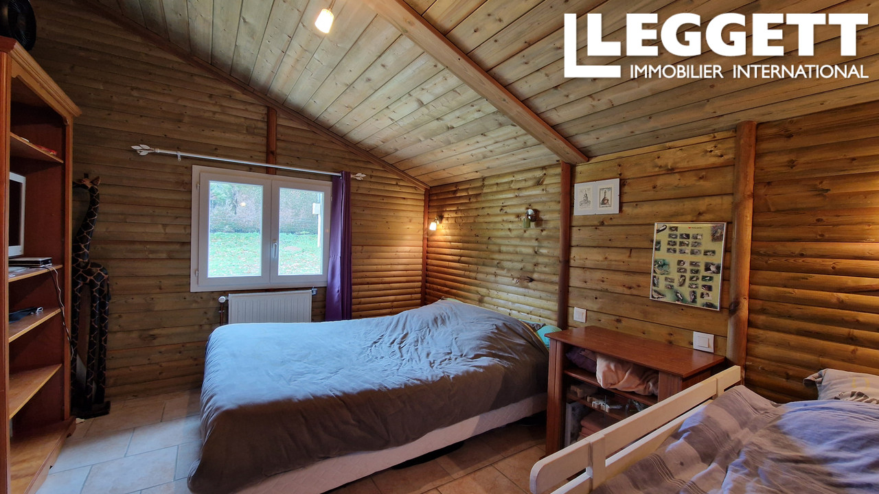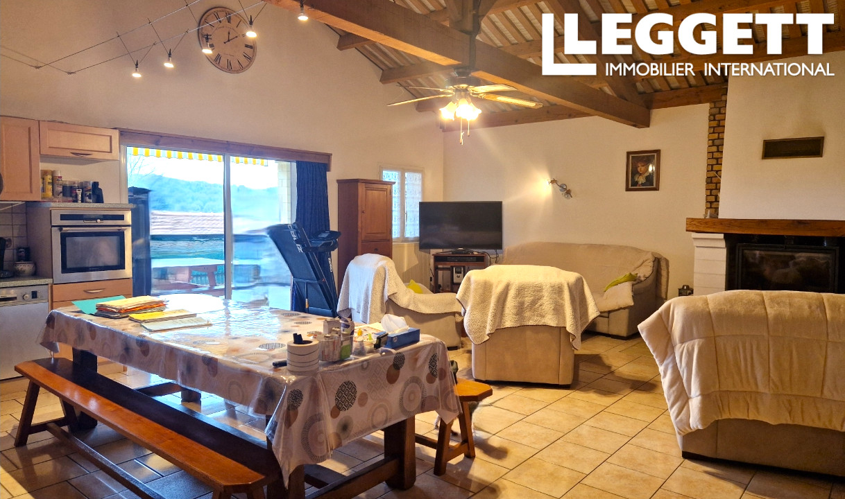 A42487NGA24 - Style chalet, cette jolie maison de plain pied offre 2 chambres, un grand séjour, salle d'eau, wc, et chaufferie / arrière cuisine. Spacieuse terrasse couverte avec vues sur la campagne environnante.
