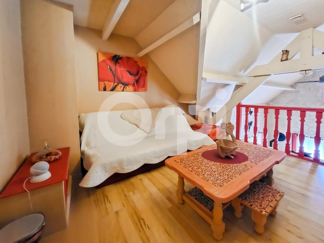 A l'étage, vous trouverez une très grande pièce palière, une grande chambre de 14 m², un dressing et une salle d'eau avec wc. La mezzanine qui domine le séjour, peut faire office de bureau et est idéale pour le télétravaille.