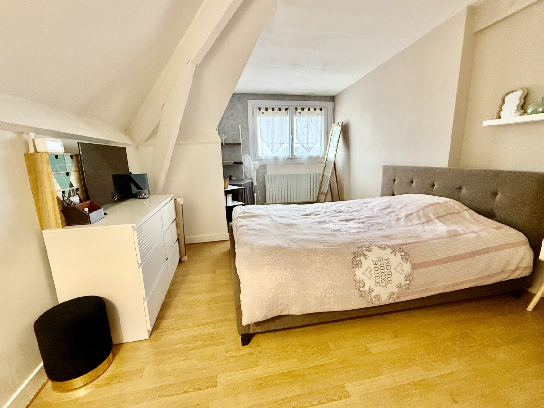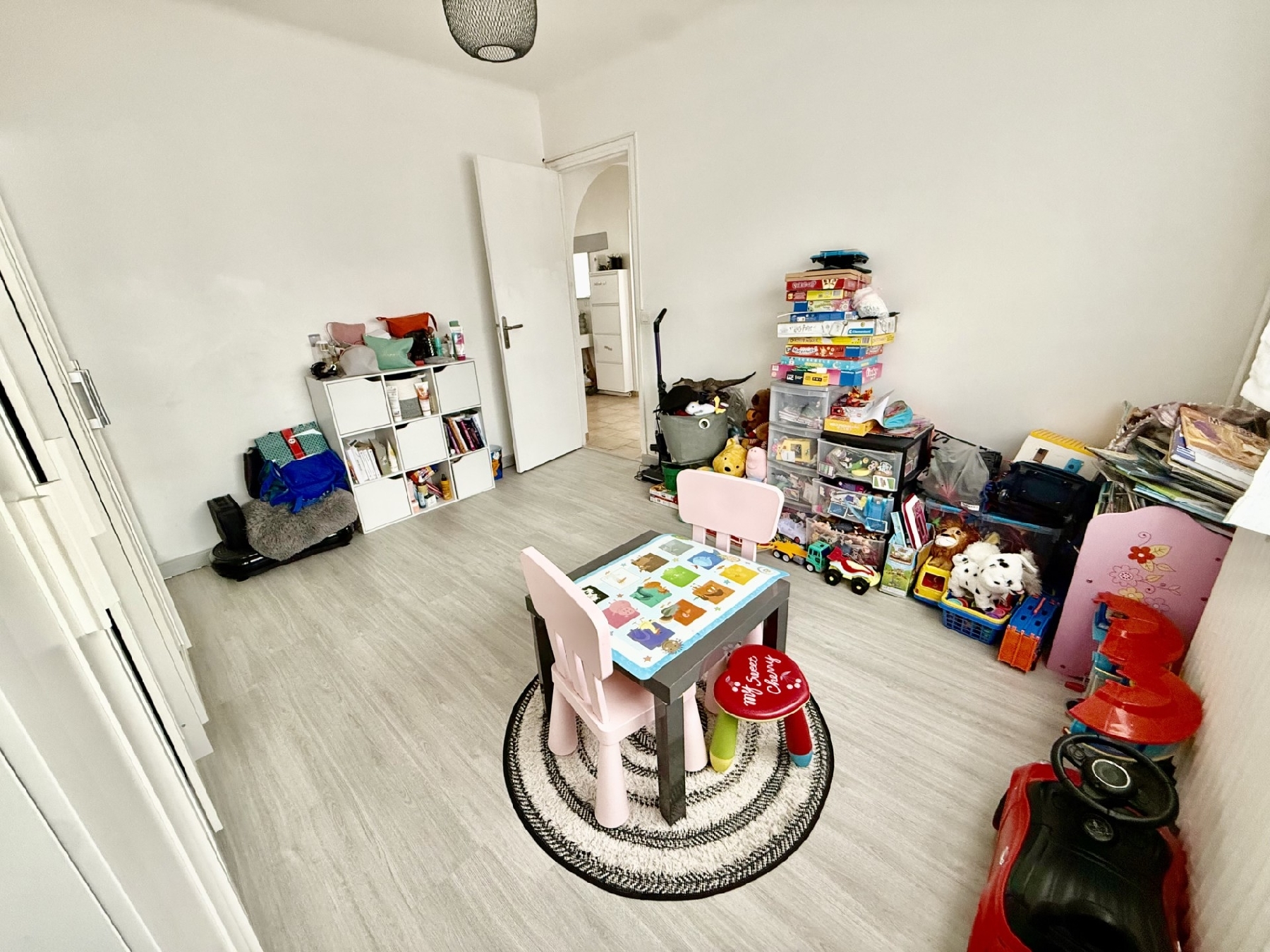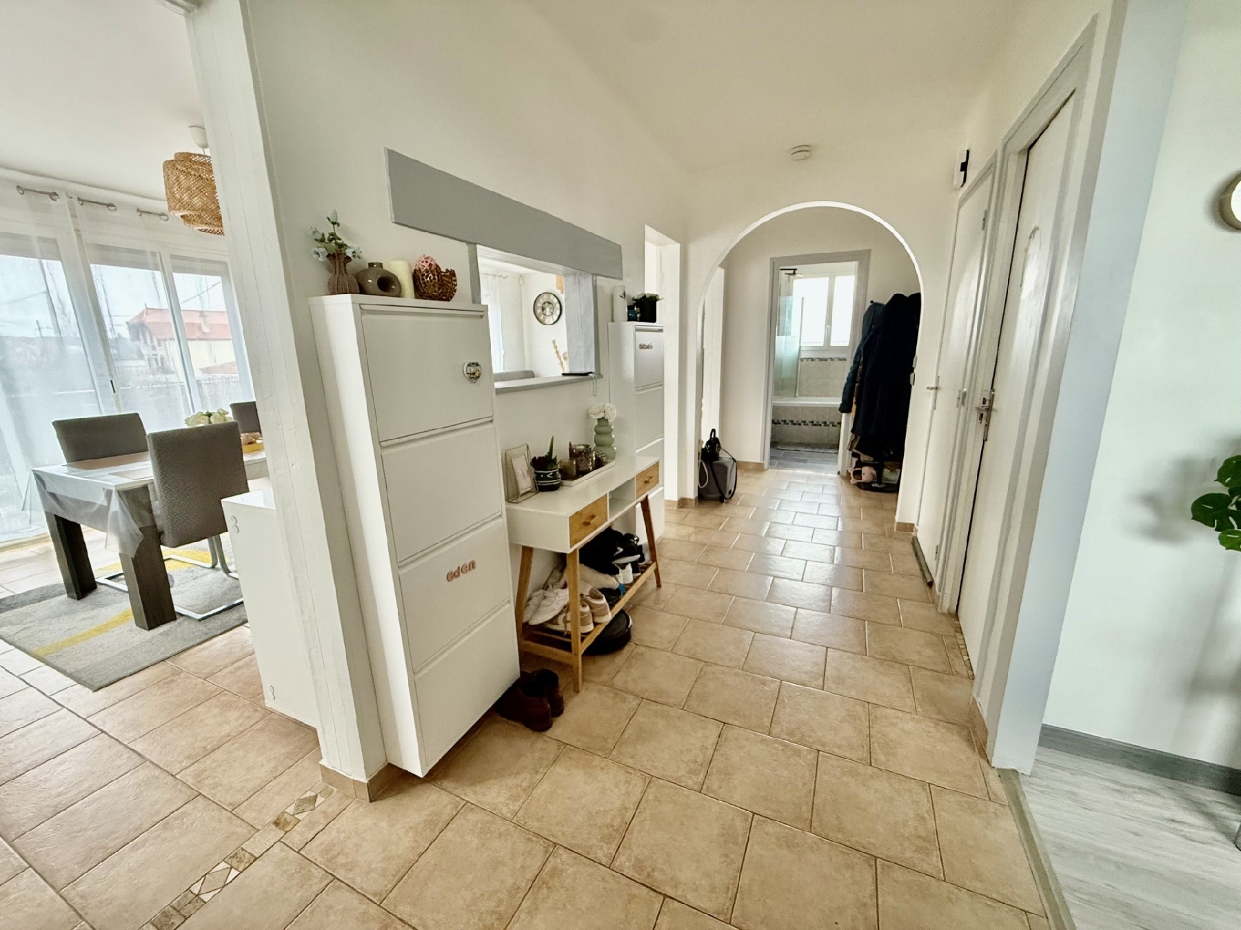 Premier niveau : une grande entrée donnant sur une pièce de vie lumineuse de 33m², une chambre, une salle de bains, un w-c et une cuisine aménagée et équipée.