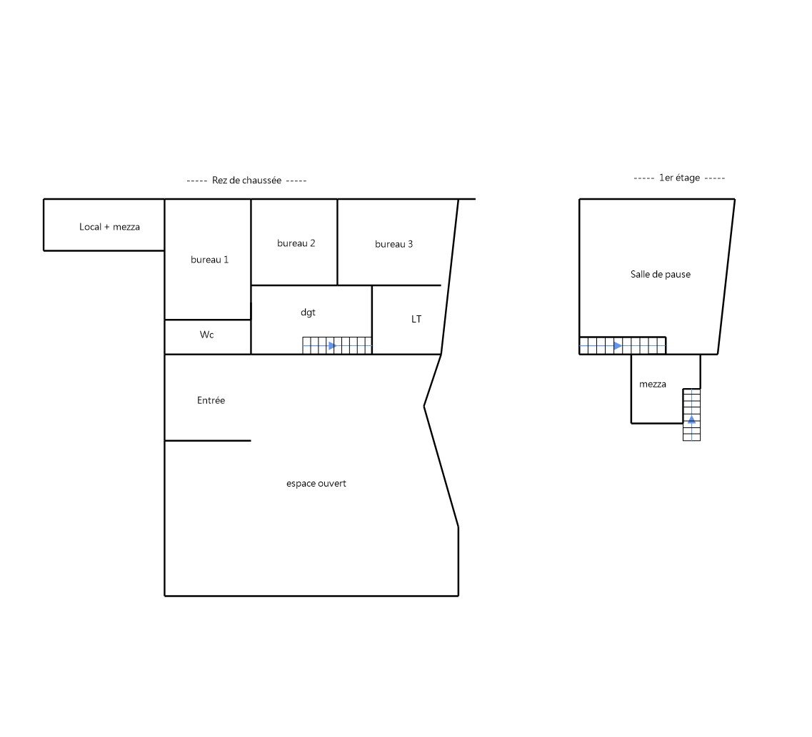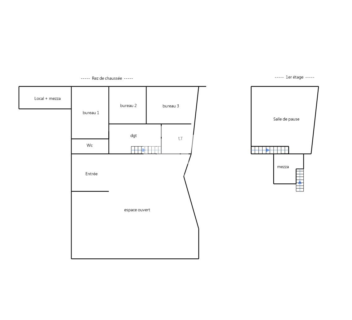 À l'étage, en mezzanine, plusieurs espaces surplombent le plateau principal et offrent des possibilités d'aménagement multiples : bureaux, espaces de réunion, ateliers créatifs? ou demain, pourquoi pas, un loft d'habitation d'exception.