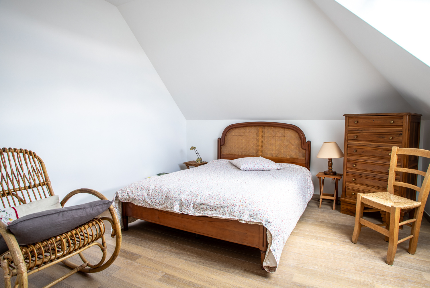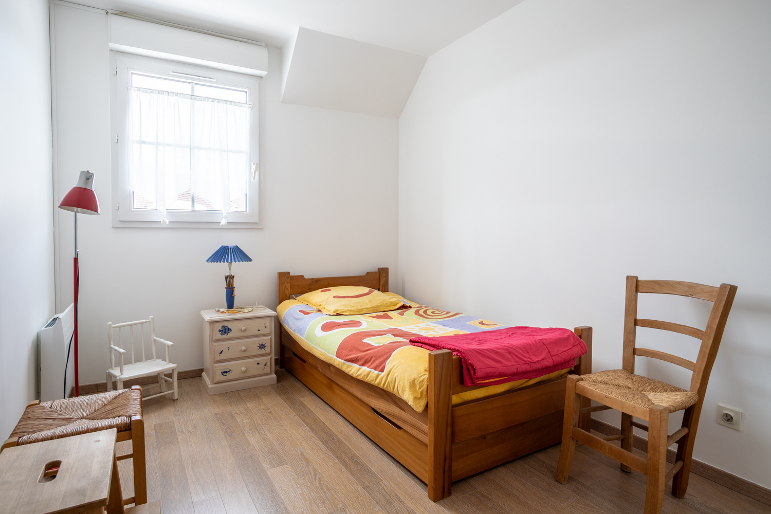 Montesson Centre, à deux pas des écoles, commerces et transports, immeuble de standing avec ascenseur, au calme, appartement duplex 5 pièces (108 m2 au sol) en dernier étage composé d'une grande entrée avec dressing, double séjour lumineux sur balcon (possibilité 4eme chambre) avec vue dégagée sur parc arboré et château de Saint Germain/Laye, cuisine indépendante équipée, une chambre, une salle d'eau, un WC séparé. A l'étage, dégagement desservant 2 grandes chambres et une salle de bains, un WC séparé. Nombreux rangements. Un grand box et une cave avec accès sécurisé en sous-sol. Chauffage individuel avec radiateurs électriques neufs. Volets roulants et vélux motorisés. Résidence pré-équipée fibre et raccordement borne de recharge pour véhicule électrique.