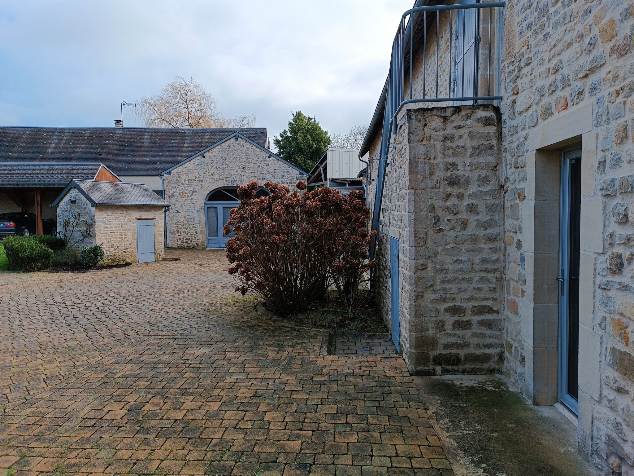 Nous avons également, au sein d'une jolie cour pavée, deux dépendances en pierre, l'une à usage d'atelier avec stockage en mezzanine, l'autre utilisée comme cave à vin et un préau pouvant accueillir trois voitures.