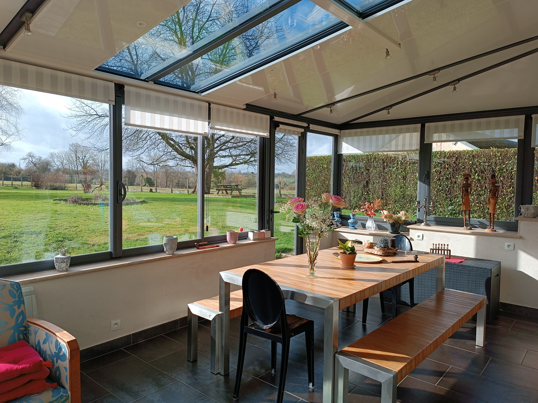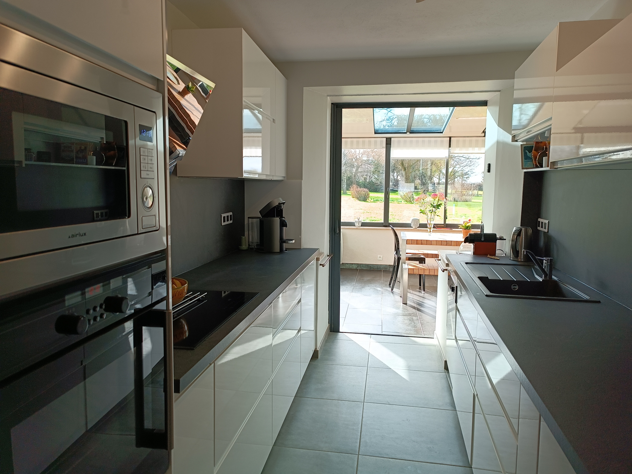 Toutes les pièces du rez-de-chaussée donnent accès à une vaste terrasse exposée plein Sud.