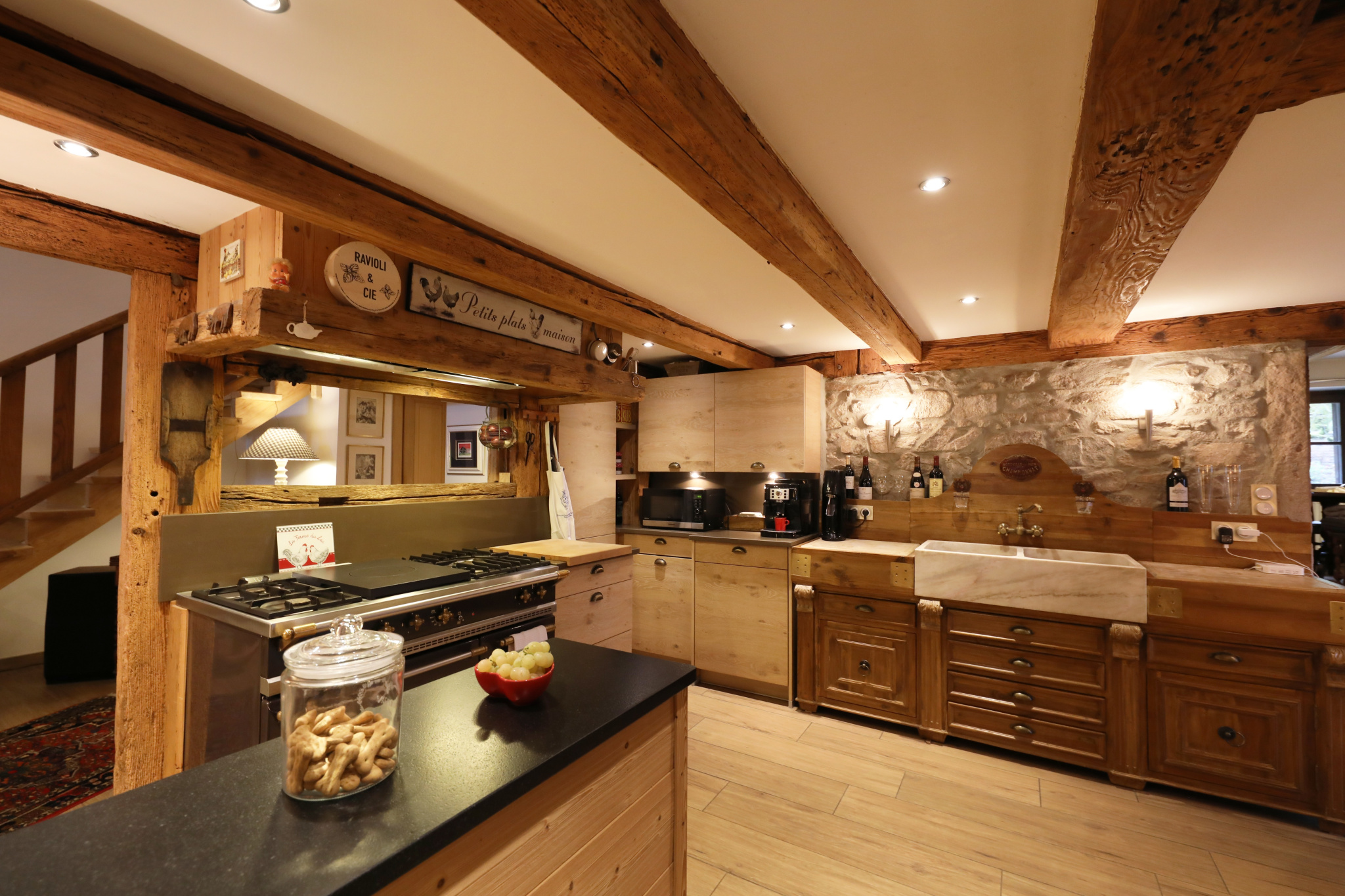 Les propriétaires successifs ont restauré cette propriété avec des prestations haut de gamme et raffinées, préservant les traits architecturaux de l'habitat de montagne.