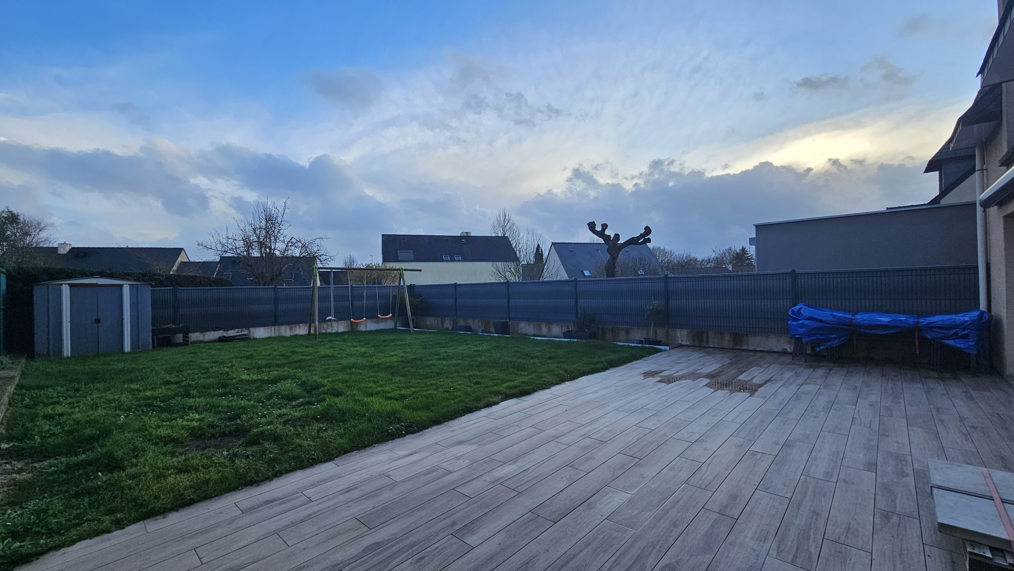 L'ensemble situé au calme, sur un terrain clos de 345 m2 avec terrasse et storebanne.