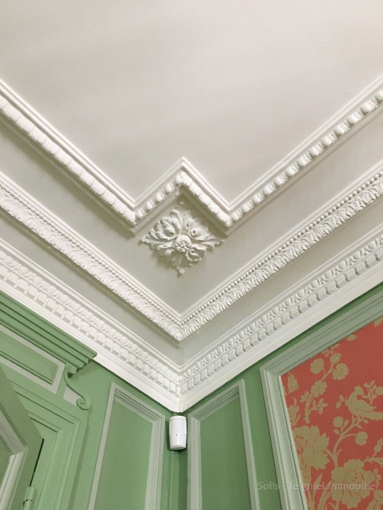 Décoration exceptionnelle et très belle restauration : parquets d'origine pour les pièces de réception, plafonds richement ornés de corniches et de rosaces, cimaises, cheminées marbre, nombreux détails de qualité.