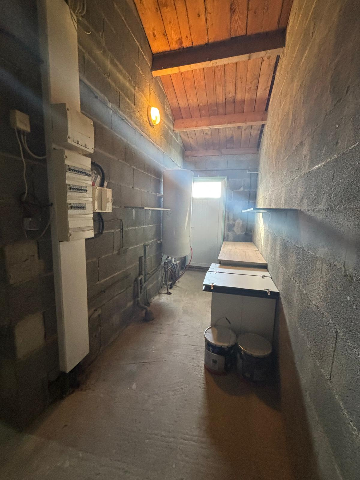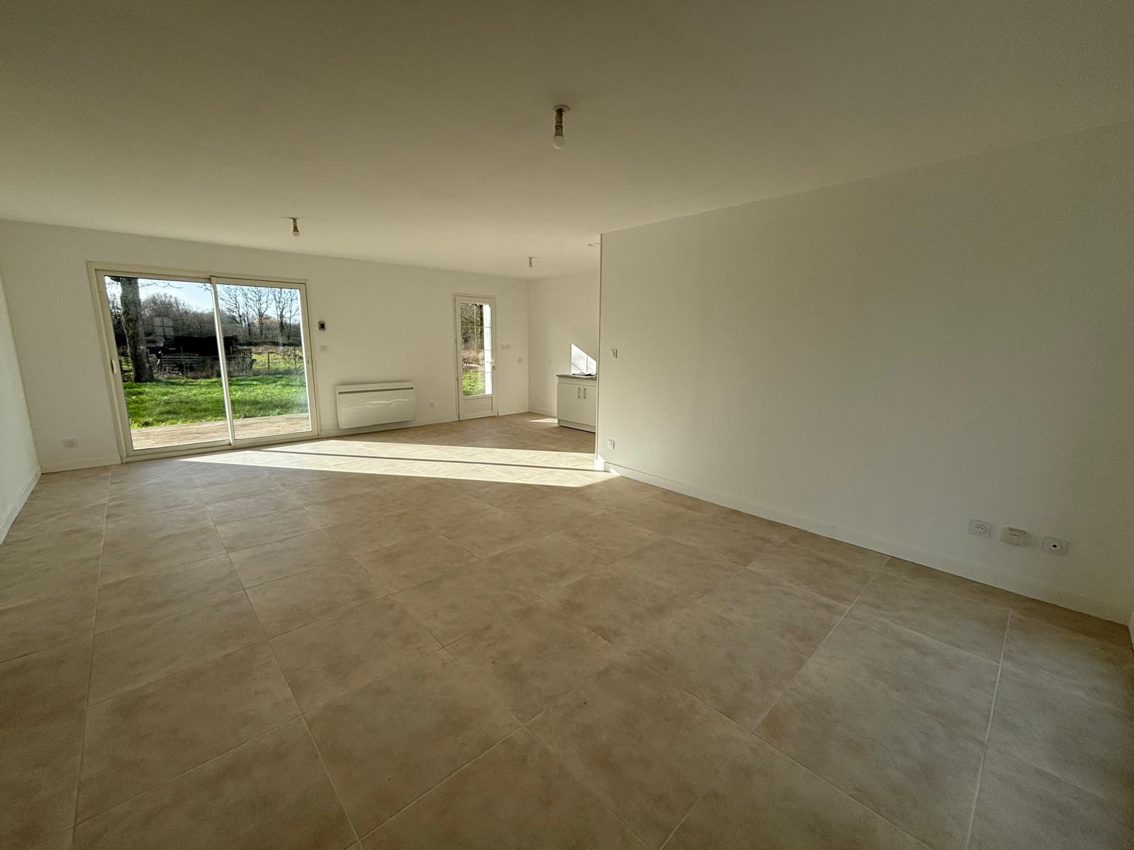 Elle se compose d'une pièce de vie de 39 m2, de trois chambres, ainsi que d'un garage avec partie cellier. L'assainissement individuel est conforme.