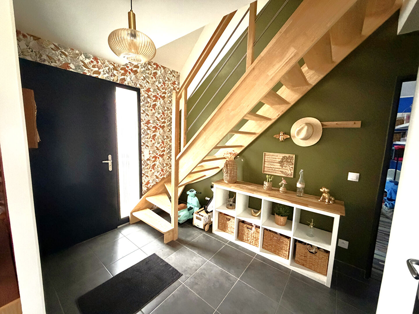Au rez-de-chaussée : un hall d'entrée, un grand séjour avec cuisine ouverte équipée, une suite parentale avec salle d'eau, un cellier.