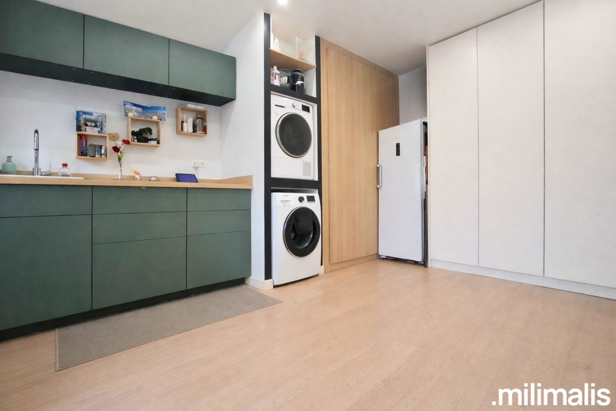 Dans son prolongement, une cuisine de 15 m² bénéficie d'un accès direct à une terrasse de 60 m², idéale pour recevoir et profiter pleinement des beaux jours. Une buanderie ainsi qu'un WC indépendant complètent le rez-de-chaussée.