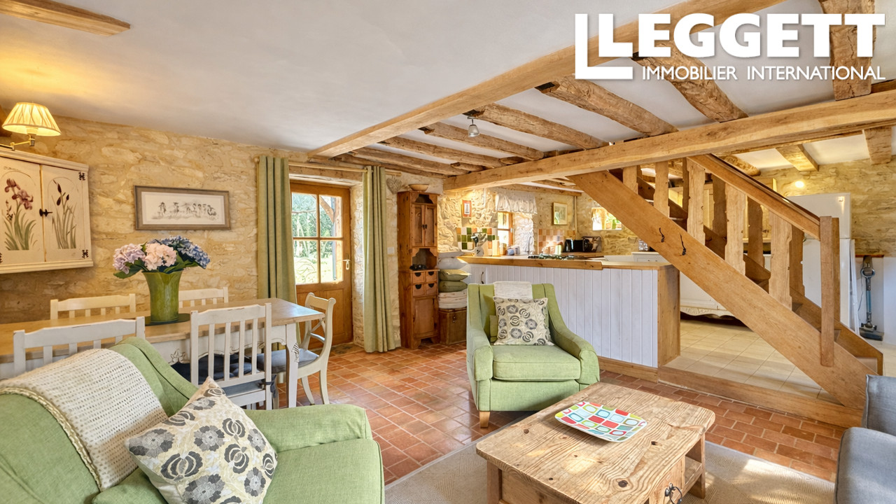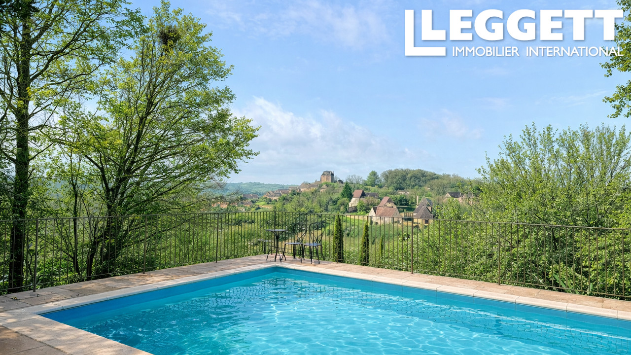 A42724KEF24 - Exceptionnelle propriété en pierre de 253 m² comprenant trois maisons magnifiquement restaurées, nichées dans des jardins paysagers avec une belle piscine chauffée de 9 x 5 m et de superbes vues panoramiques sur la vallée, le château local et la campagne.