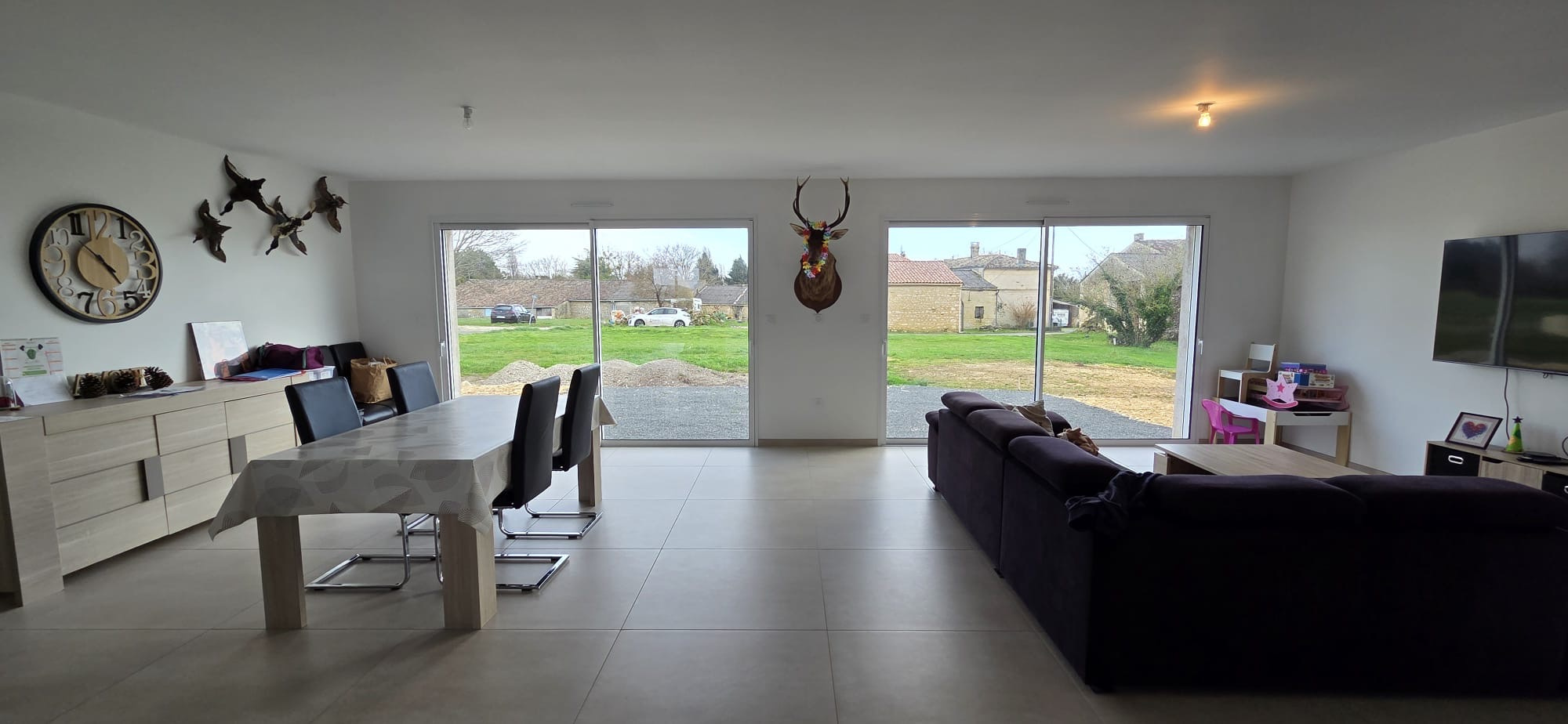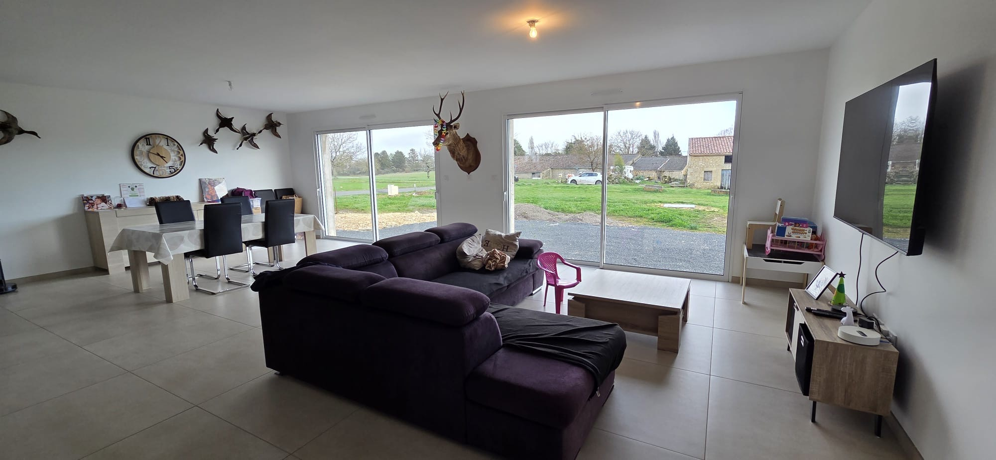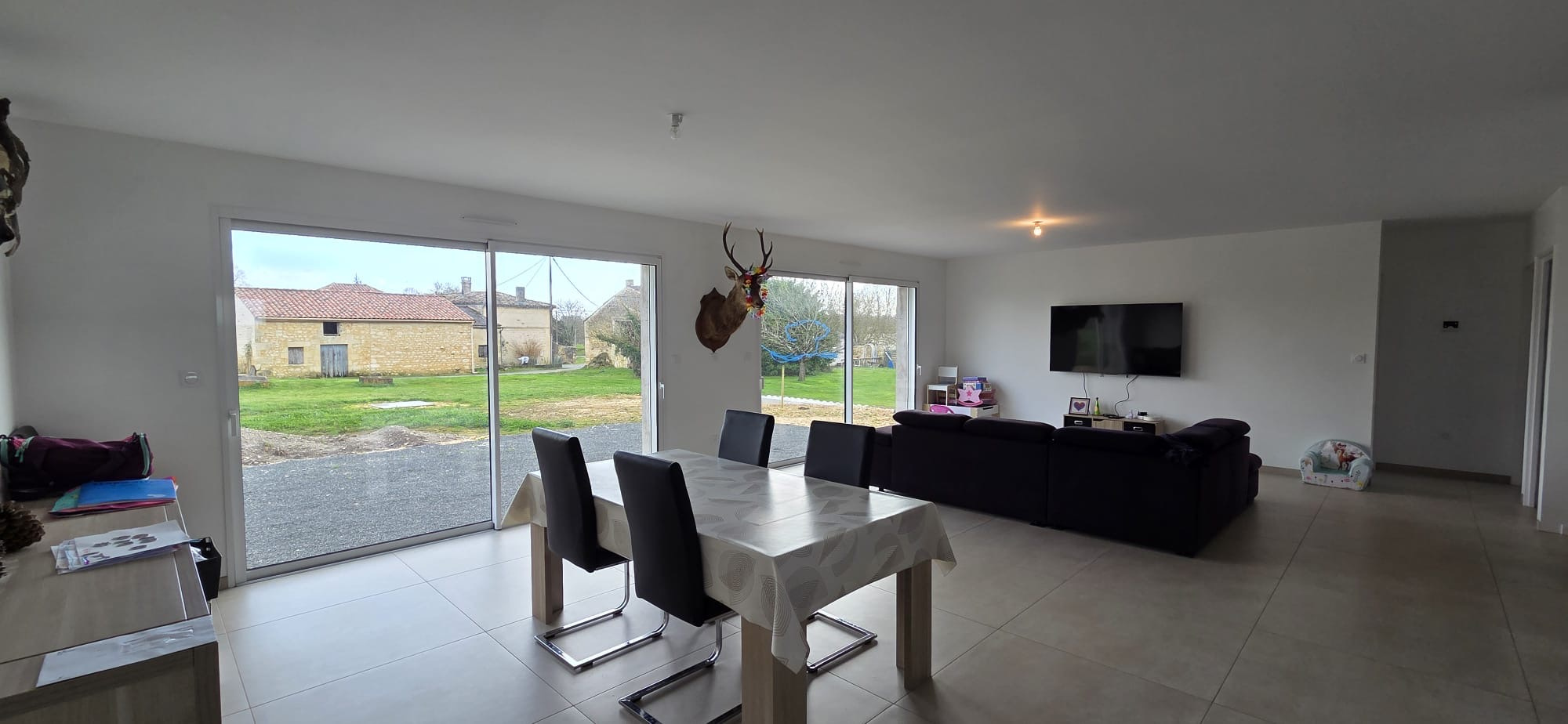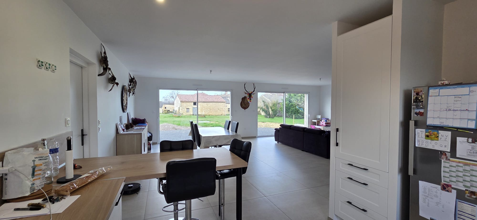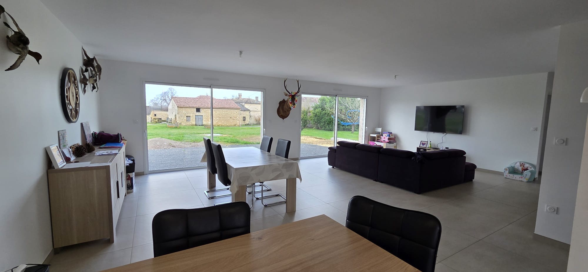 Votre agence - LG IMMO - Cabinet GARÉCHÉ vous propose cette maison neuve, au calme, située sur la commune de Champagnolles, à seulement 3 kms du bourg et de son épicerie multi-services, à mi-chemin entre gémozac et St Genis de Saintonge, 14 kms de Pons, 30 kms des premières plages et 1h30 de Bordeaux par l'autoroute A10. Implantée au milieu de son terrain à aménager, elle propose 135 m2 entièrement de plain-pied. Son entrée de 6 m2 avec placard dessert une pièce de vie très lumineuse de 61,50 m2 ouverte sur le jardin, avec cuisine aménagée et équipée, ainsi qu'un WC indépendant. La partie nuit se compose de 2 chambres, une de 13,50 m2 et une autre de 14,20 m2 dont un dressing et avec accès direct à la salle d'eau de 7,50 m2 comprenant une douche et un meuble vasque. Dans le prolongement de la cuisine se trouve un cellier de 27,60 m2 pouvant facilement acceuillir une troisème chambre ainsi que sa salle d'eau (une simple cloison est nécessaire) tout en conservant un espace technique et buanderie de plus de 10 m2. Un garage attenant de 28 m2 avec porte électrique et galetas complète l'ensemble. L'assainissement est assuré par une fosse septique (assainissement individuel) et le chauffage est assuré par un plancher chauffant. Cette maison, d'à peine 2 ans, se montre très économique en energie puisqu'elle est classé A et un forage permet également de réduire les factures d'eau. Le jardin, brut, n'attend que votre imagination pour être sublimé et s'intégrer dans le panorama naturel de la campagne environnante. Le crépis reste également à faire, selon vos goûts. Pour plus d'informations ou pour organiser une visite, contactez-nous au 05 46 97 27 11 ou par mail cabinet-gareche@lgimmo.net.