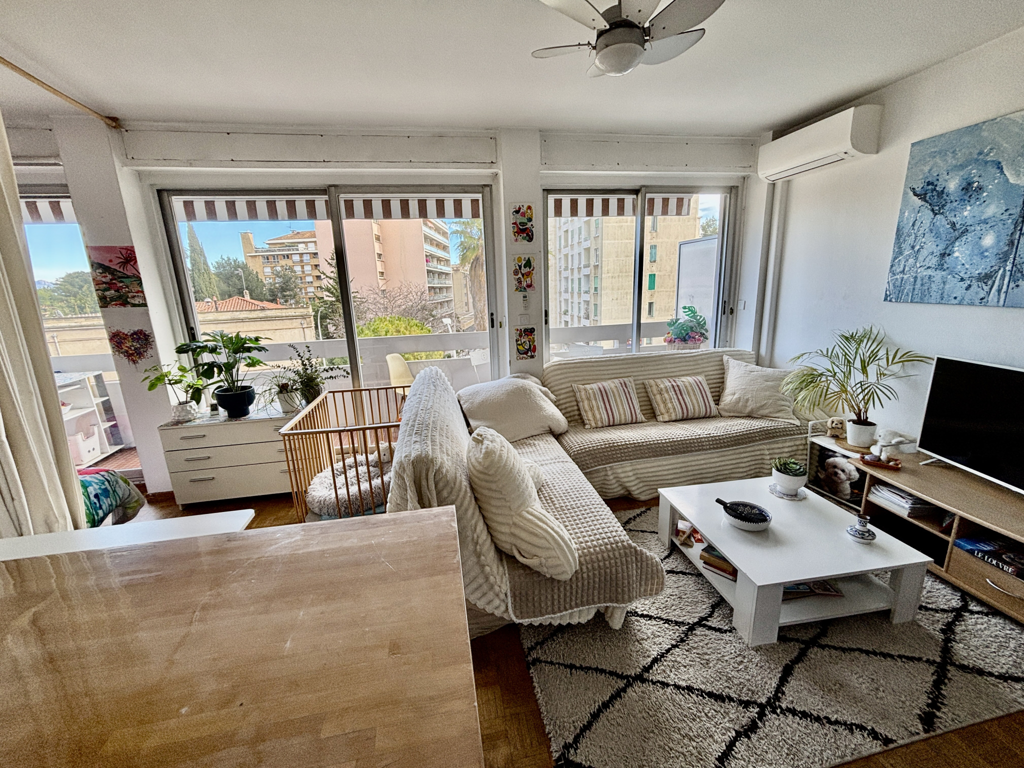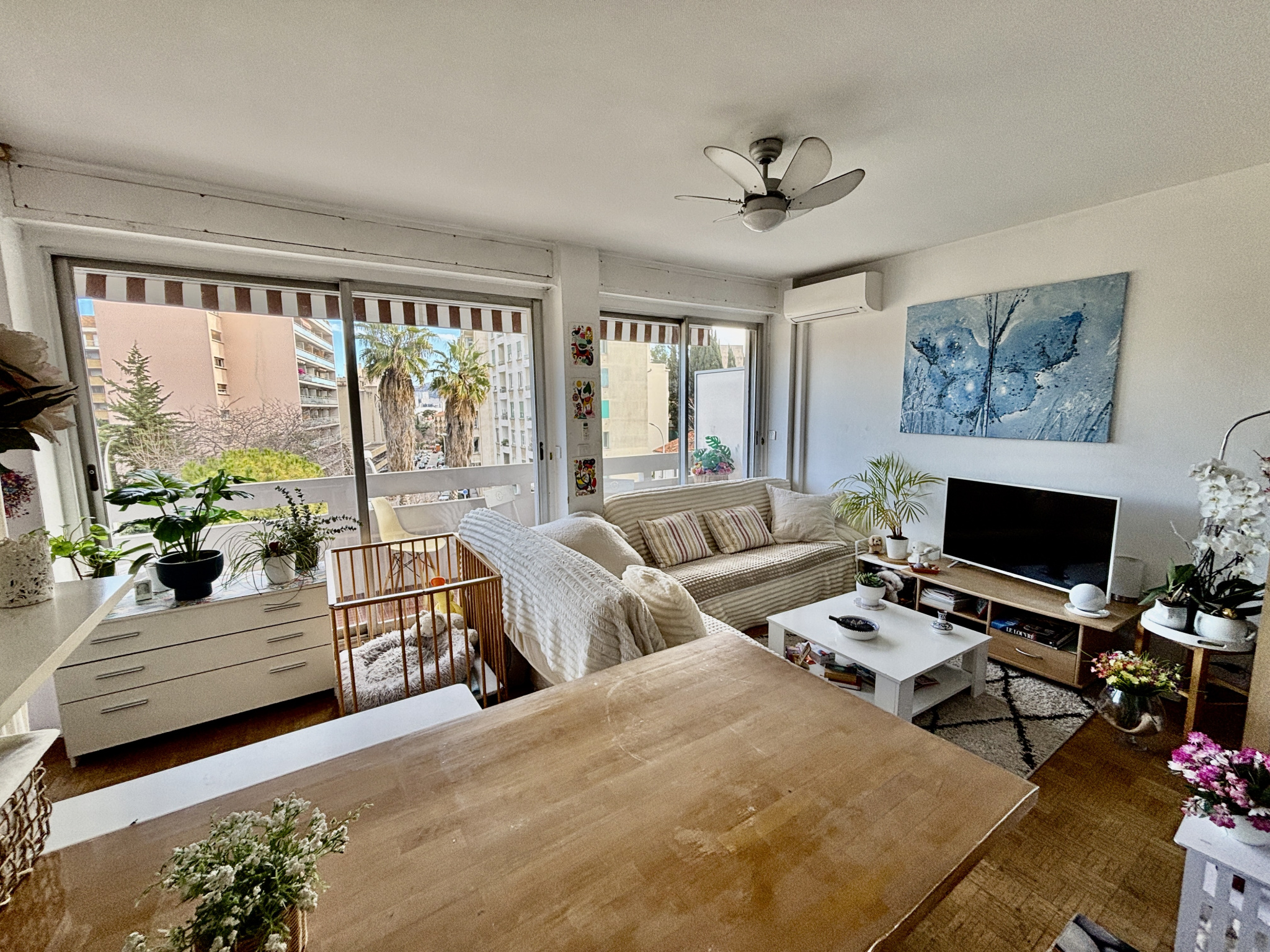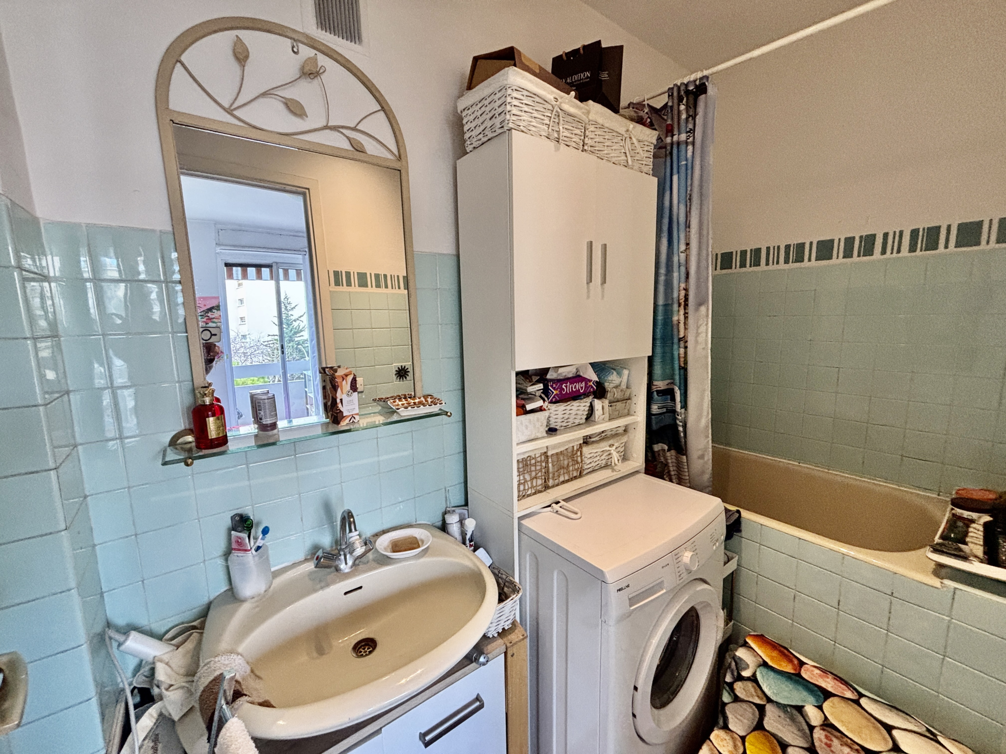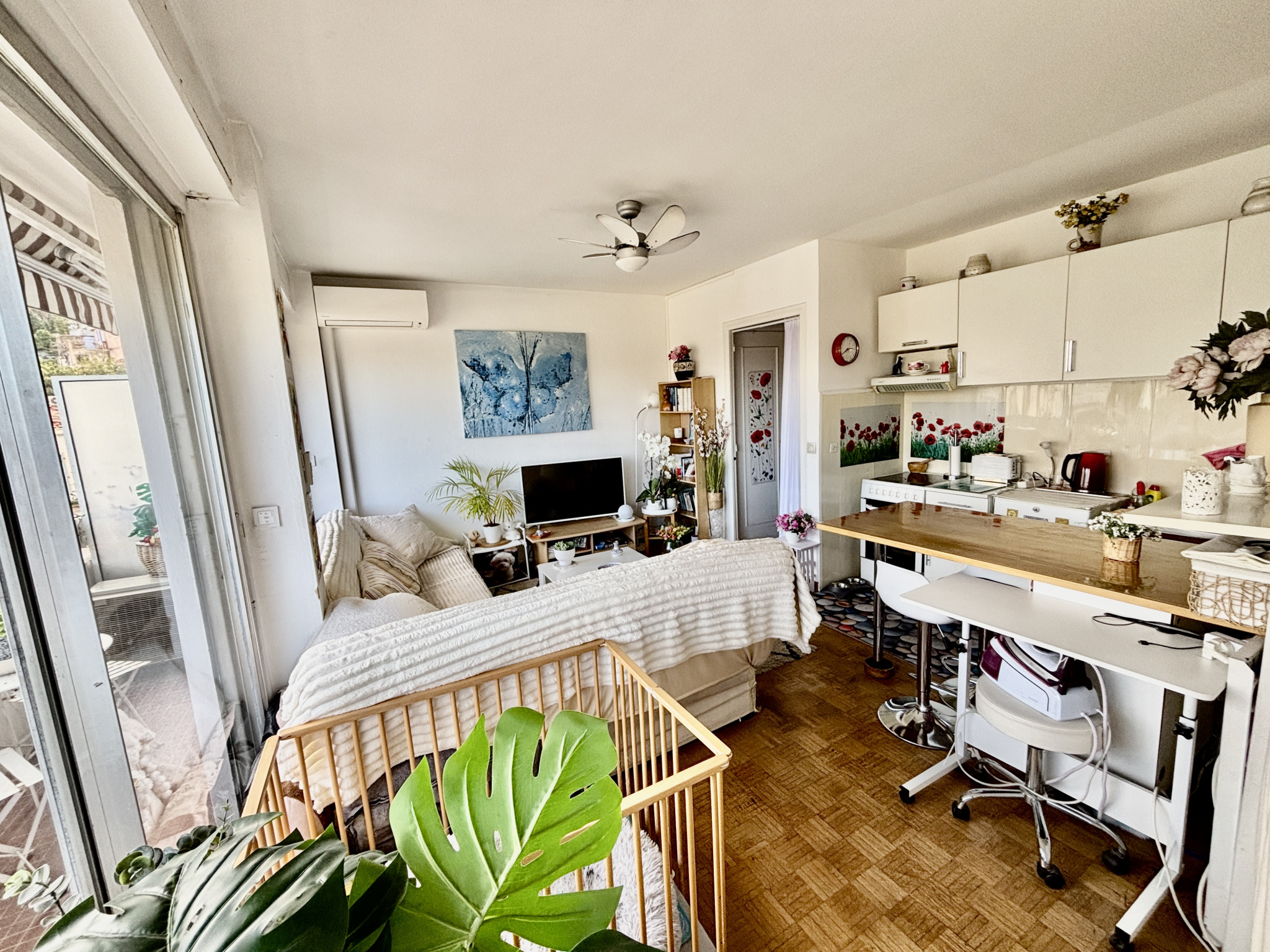 L'espace de vie avec sa cuisine ouverte s'ouvre grâce à de larges baies sur une terrasse de 8,55m2 exposition Sud Est. Côté nuit, une chambre avec sa salle de bain (possibilité de la fermer) ouverte sur terrasse. WC séparé. Une cave complète ce bien. Climatisation. Ravalement fait en 2024. Belle cage d'escalier. A proximité de tous commerces à pied. Nombre de lots soumis à la copropriété: 36 lots principaux. Quote part annuelle des charges: 1536 Euros (chauffage, eau chaude et eau froide inclus) soit 128 Euros par mois. Pas de procédure en cours. Les informations sur les risques auxquels ce bien est exposé sont disponibles sur le site géorisques: www.georisques.gouv.fr. Mandat No421. Prix: 199 000 Euros. Les honoraires d'agence sont exclusivement à la charge du vendeur