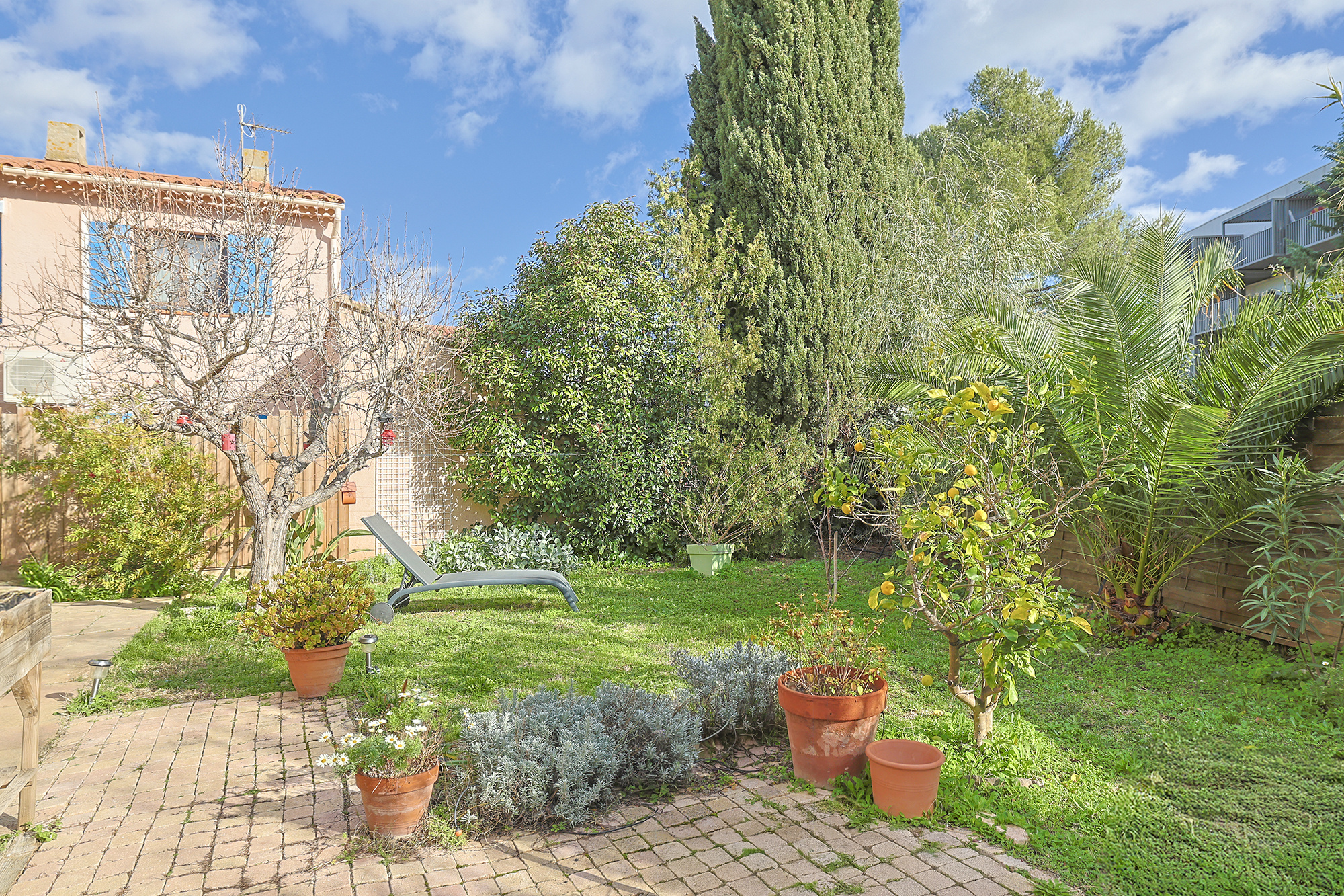 La maison dispose d'un jardin privatif de 122 m2 exposé sud est, de deux places de stationnement privées et d'un stationnement facile au sein du lotissement.