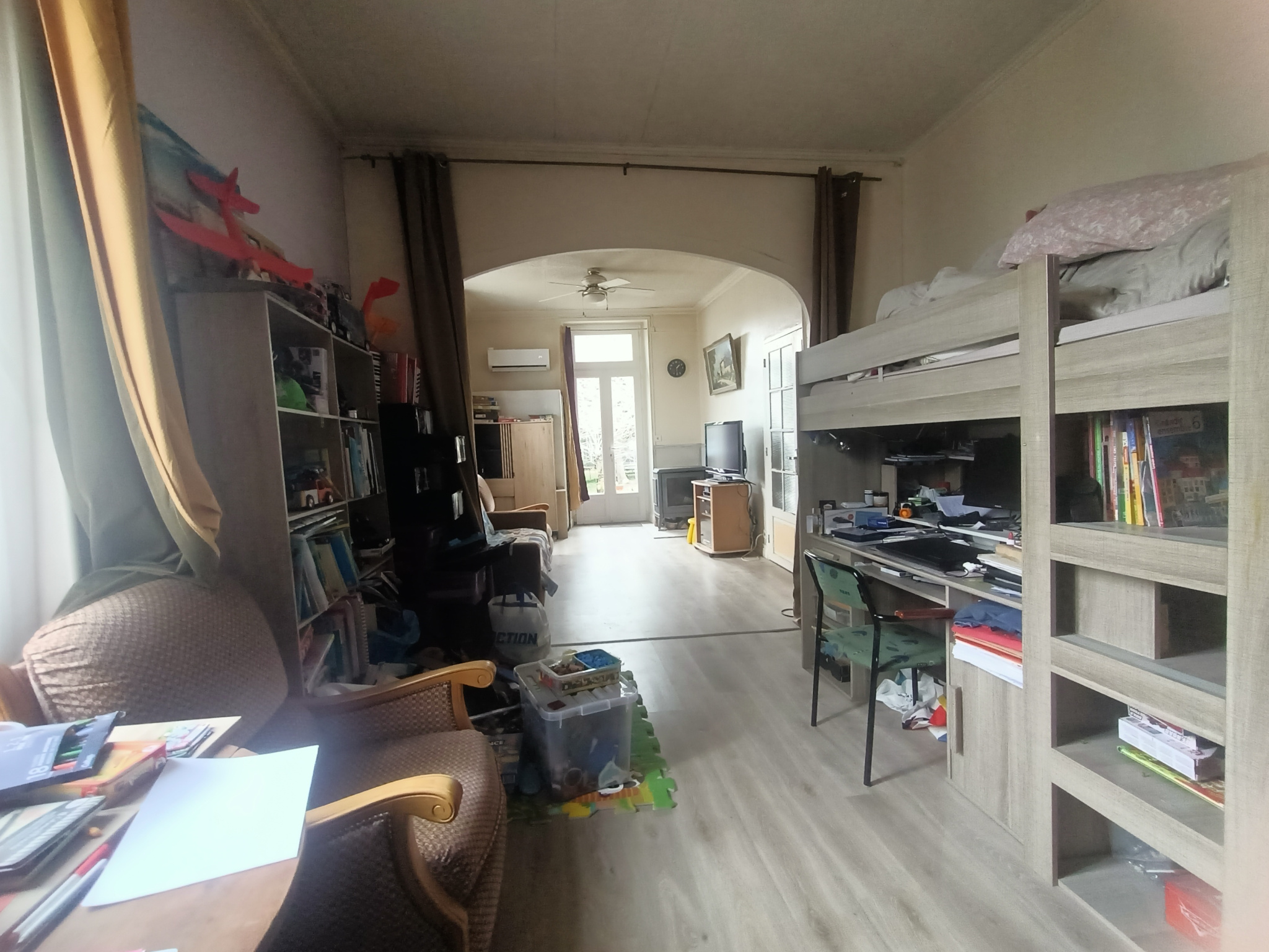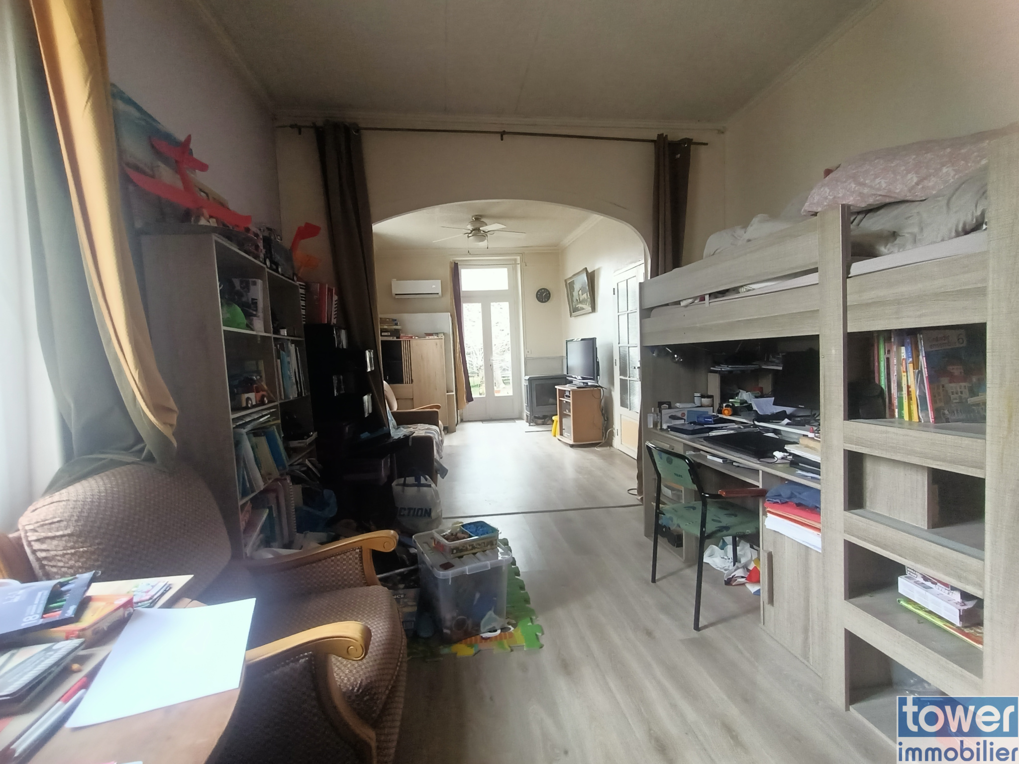 Maison sur sous-sol surélevé comprenant :Rez-de-Chaussée (partie habitable) : Vous apprécierez la belle hauteur sous plafond qui confère un volume exceptionnel aux pièces. L'étage comprend une entrée, un séjour très lumineux exposé SUD (Salon) équipé d'une pompe à chaleur air-air récente réversible et d'un chaleureux poêle à bois. Le séjour donne accès à une petite terrasse menant directement au jardin. Une cuisine séparée, une salle d'eau équipée d'un chauffe-serviettes, un WC indépendant, un débarras et une buanderie. La partie habitable comprend actuellement deux chambres( posibilité 3ème).