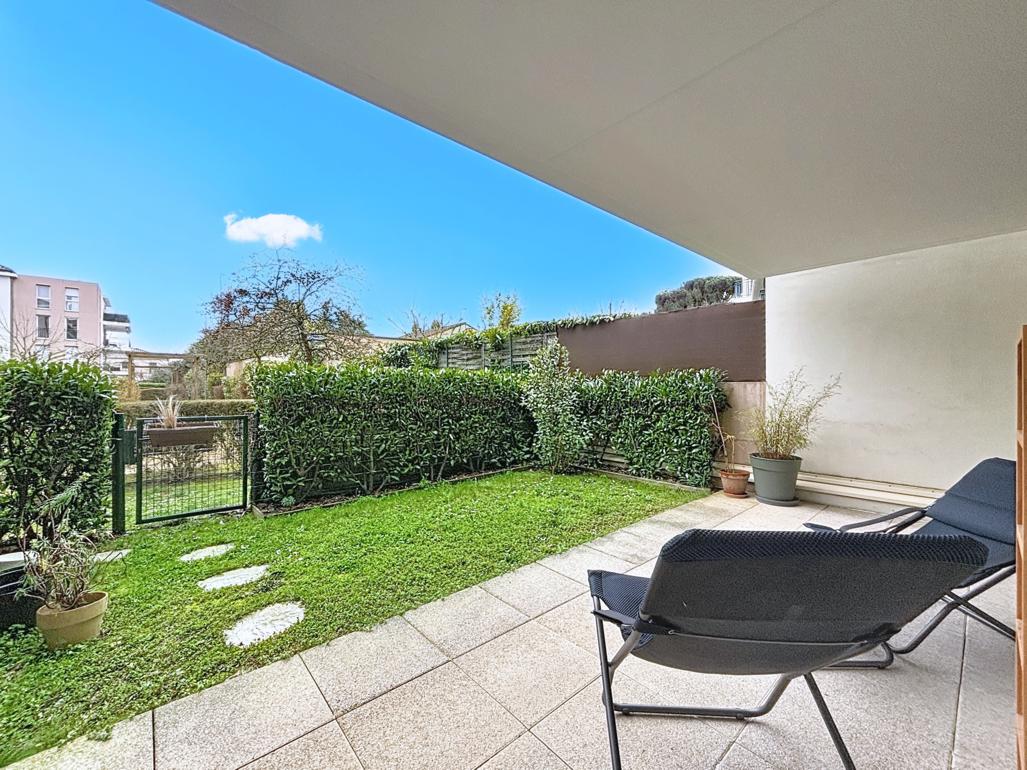 ? Emplacement hyper central à Craponne ? Deux jardins privatifs (côté séjour et côté chambres) ? Terrasse couverte ? Appartement en parfait état ? Deux chambres avec rangements ? Environnement calme