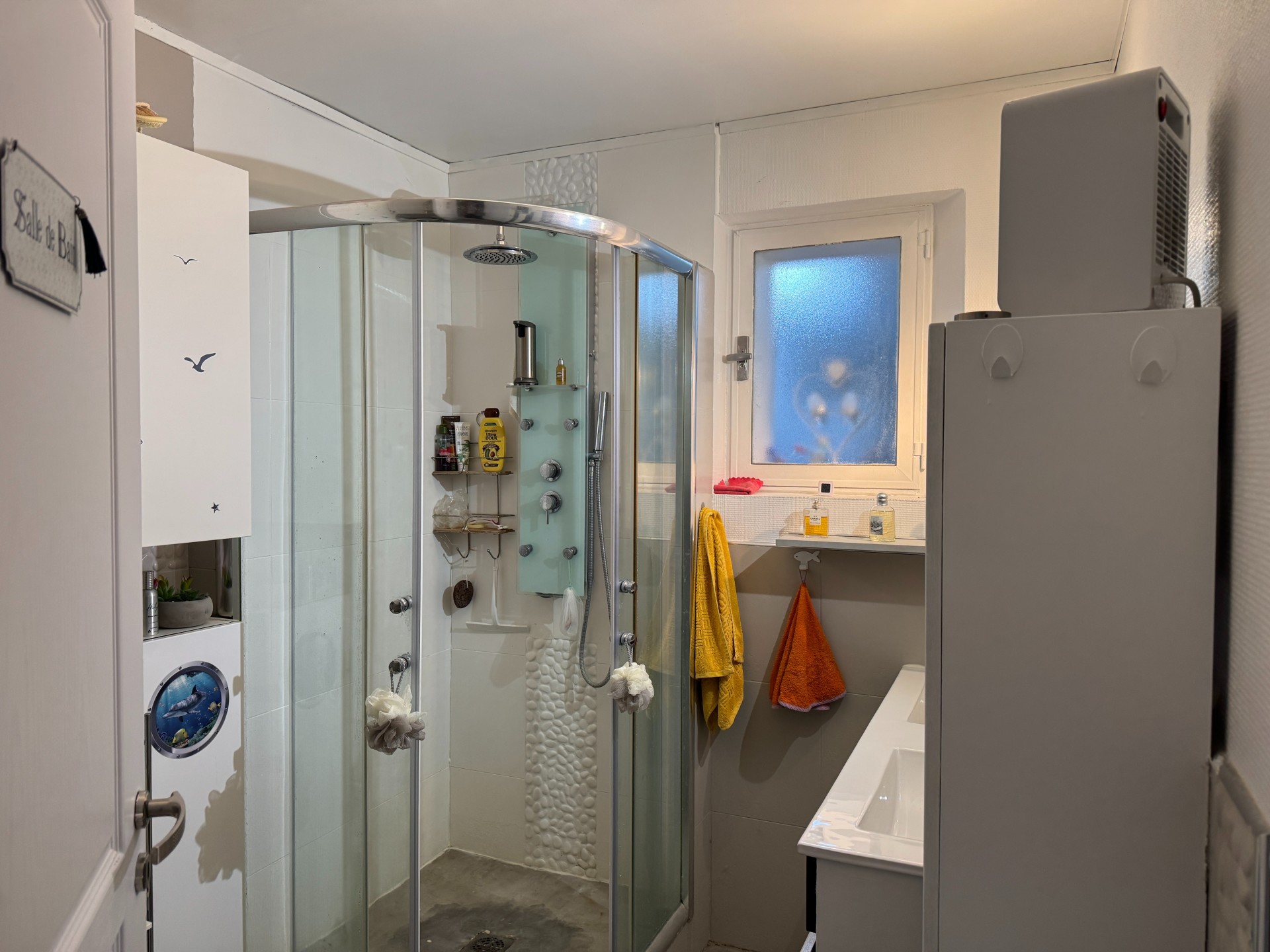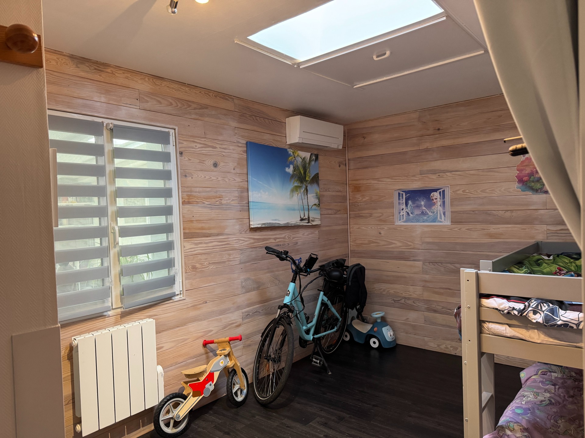 Entièrement climatisée, vous pourrez également si vous le souhaitez ajouter un poêle à bois grâce au conduit qui a été conservé.