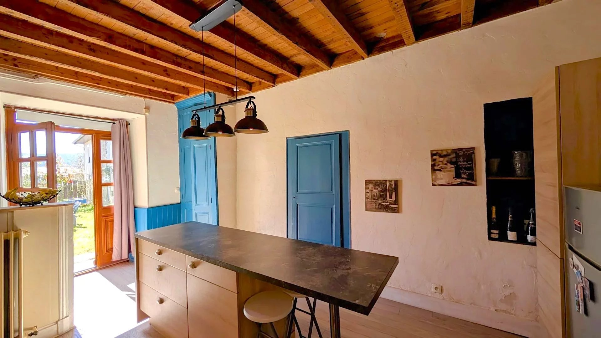 A vendre sur la commune de PONT DE BEAUVOISIN, dans une petite rue calme et à proximité des commodités, jolie maison mitoyenne des années 40 d’environ 110 m² habitables, implantée sur une parcelle bien ensoleillée de 500 m².