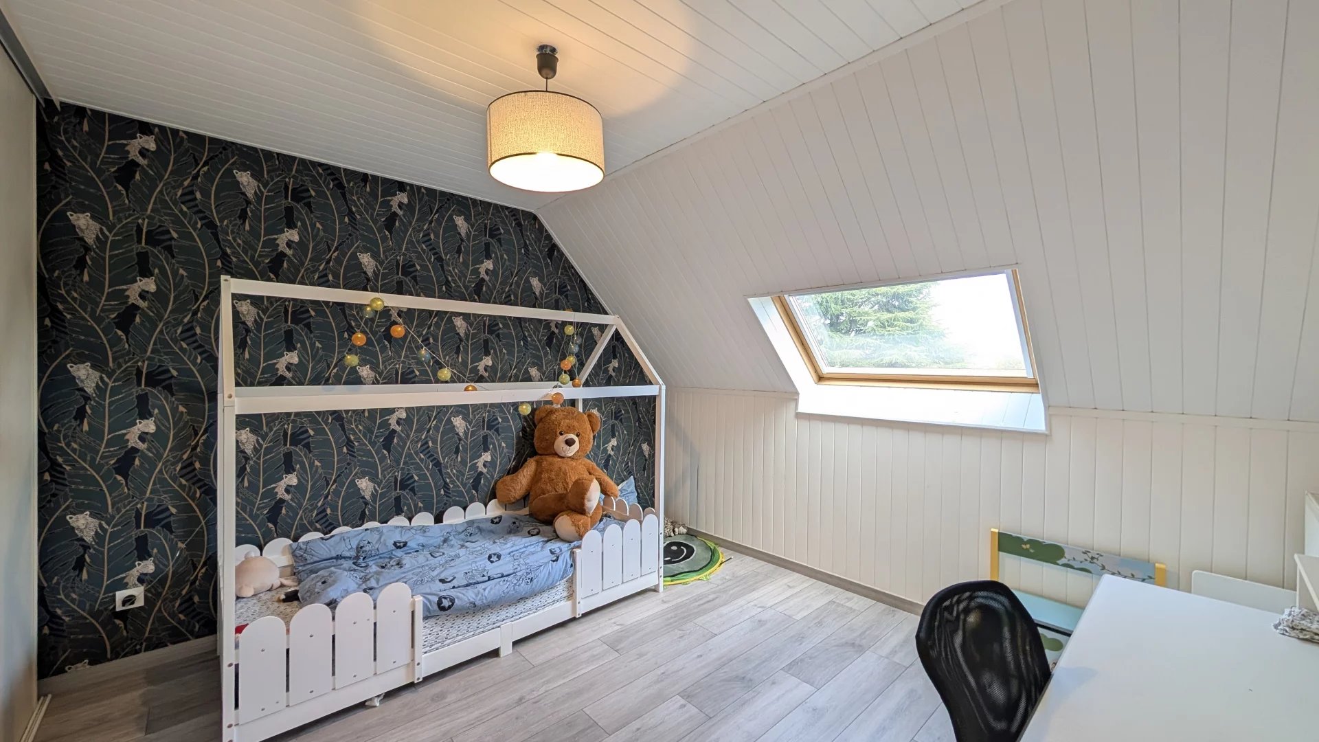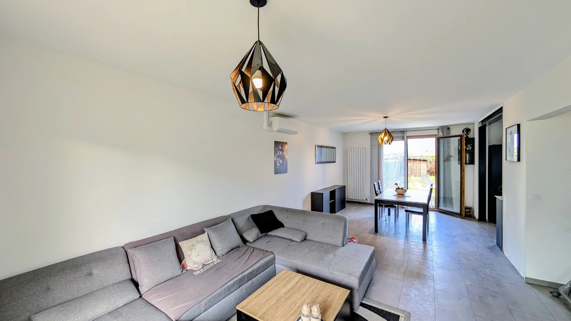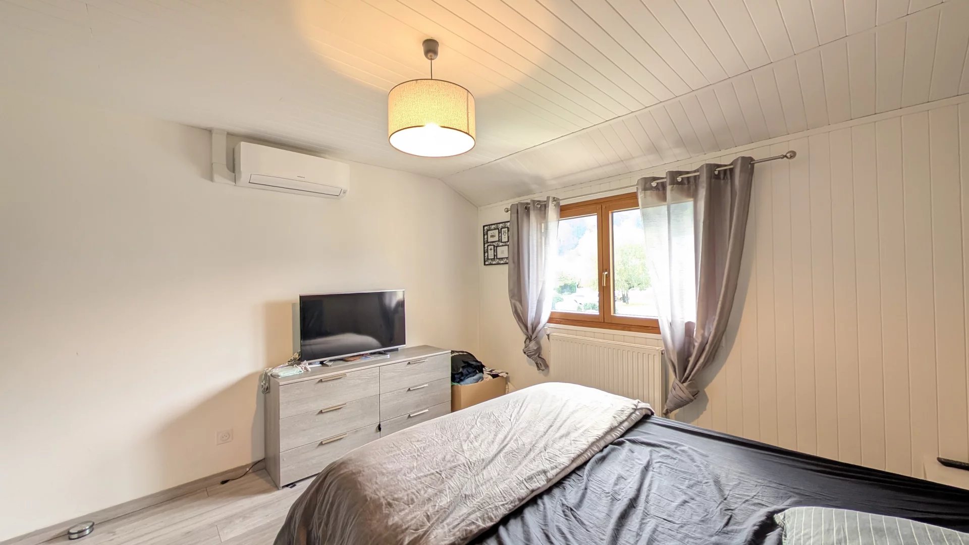 Rénovée en 2022, la maison présente des finitions contemporaines et une isolation améliorée. La climatisation dans le séjour assure le confort toute l’année, les rangements intégrés optimisent les espaces, et le garage spacieux peut servir de stationnement ou d’atelier.