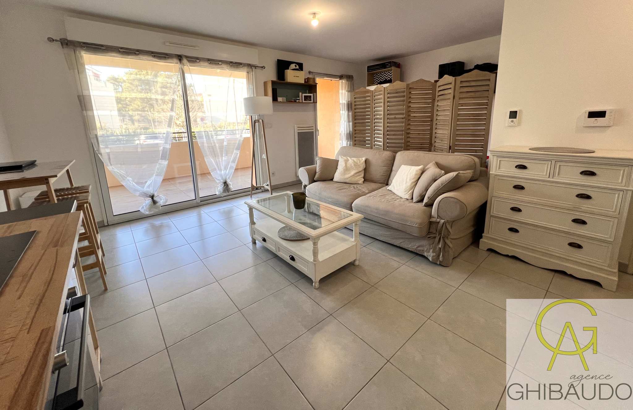 Il mesure 35 m2, bénéficie d'une terrasse de 13 m2 et d'une place de parking aérienne et privative.