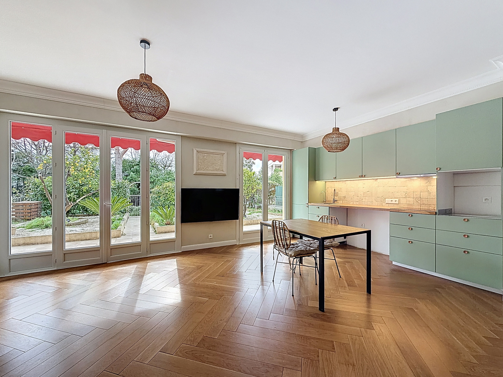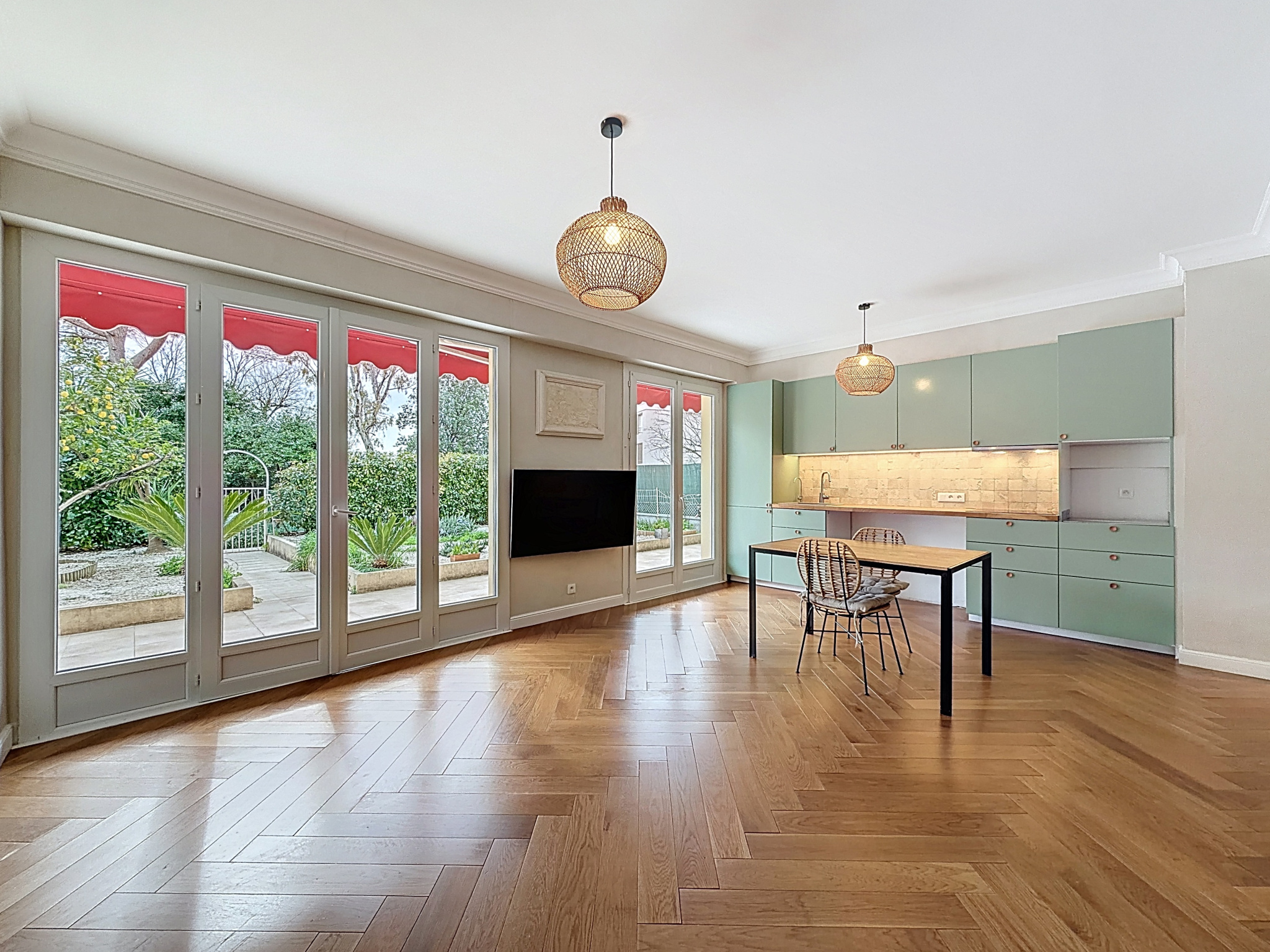 Dans une résidence de standing, découvrez ce superbe appartement 3 pièces de 67 m2 en rez-de-jardin, véritable havre de paix baigné de soleil. Dès l'entrée, vous serez séduit par un espace fonctionnel avec coin bureau idéal pour le télétravail et un grand placard de rangement. Le séjour, spacieux et particulièrement lumineux grâce à son exposition plein sud, s'ouvre sur une élégante cuisine américaine parfaitement intégrée, créant un espace de vie convivial et moderne. Côté nuit, deux chambres confortables bénéficient d'un accès direct à la terrasse et au magnifique jardin privatif de 110 m2, sans aucun vis-à-vis. Un véritable prolongement de l'espace de vie, idéal pour recevoir, se détendre ou profiter des beaux jours en toute intimité.