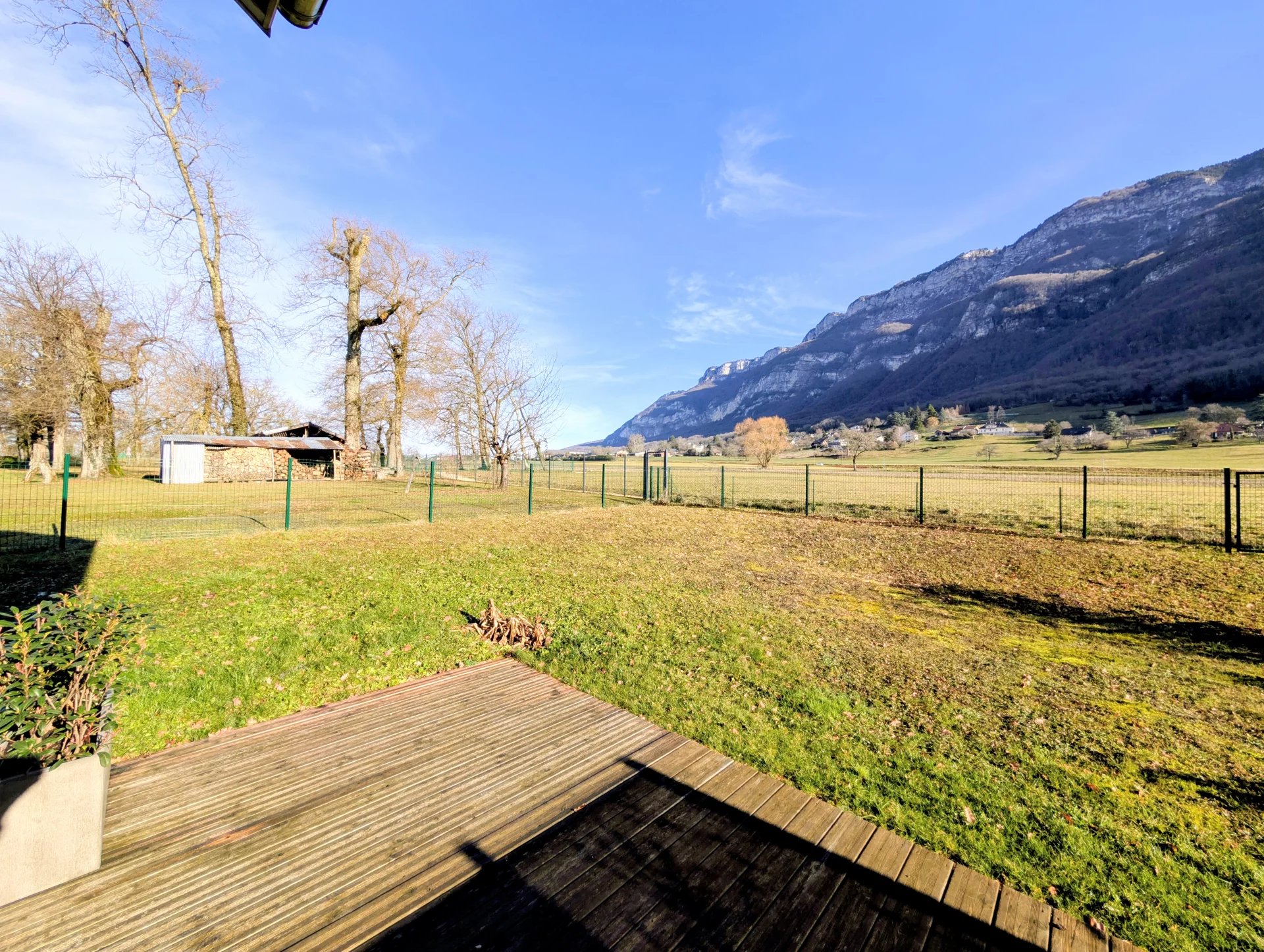 Coté extérieur : une TERRASSE de 16m² sur un bel espace JARDIN privatif de 190m² environ avec une vue dégagée sur la montagne et la nature.