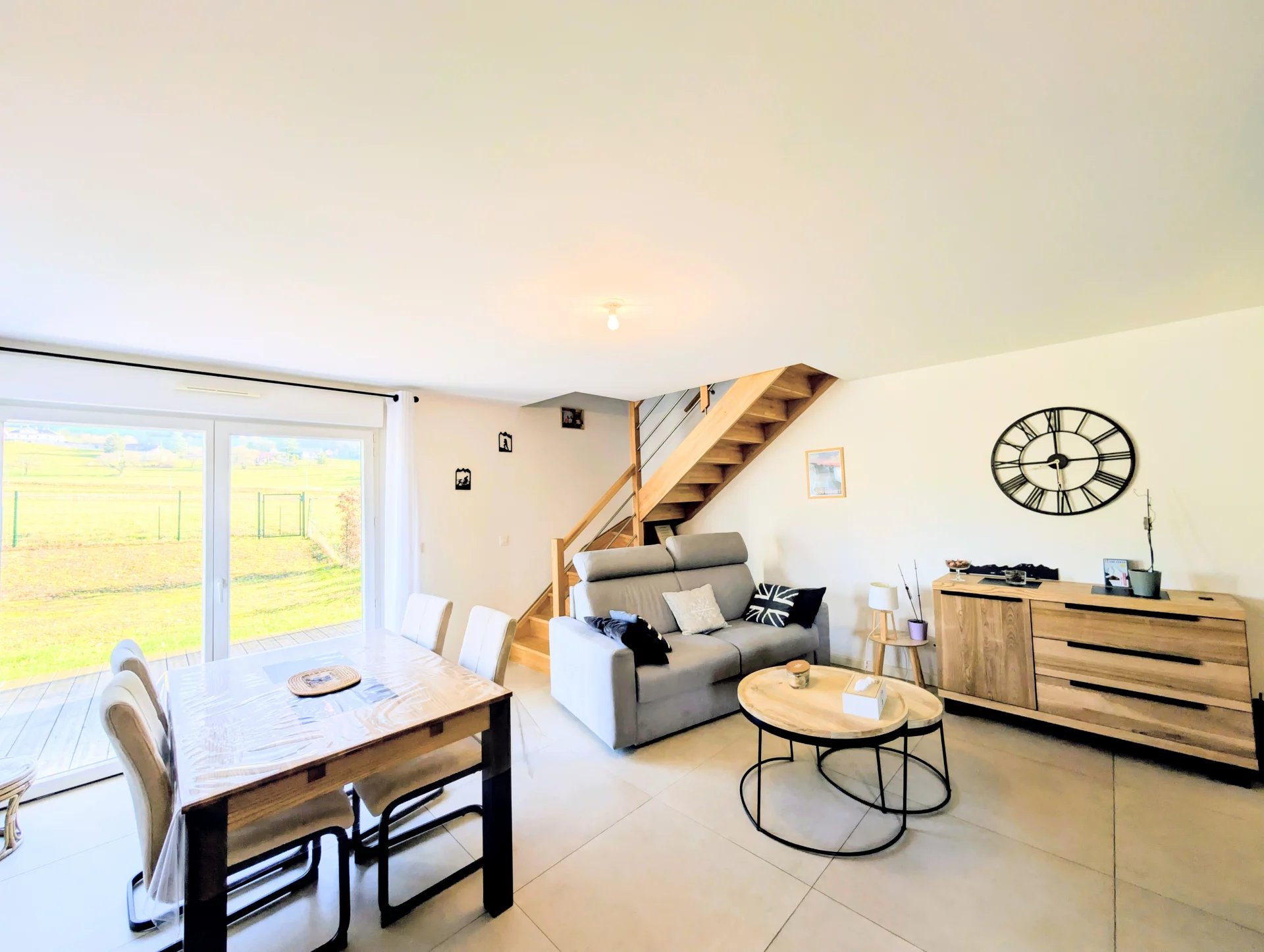Le jardin de 190 m² constitue un véritable prolongement extérieur du logement, adapté à la détente, aux repas en plein air ou à la création d’un potager. Le garage double assure un stationnement sécurisé et un espace de stockage apprécié.
