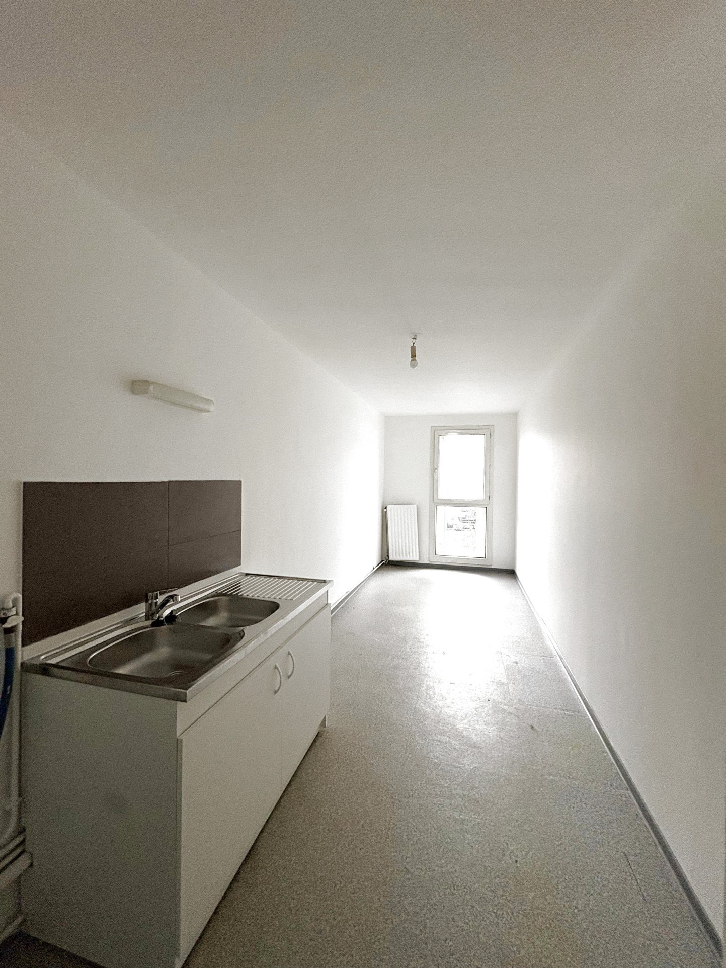 Appartement de type 3 situé au RdJ et composé d'une entré, une buanderie, un WC, une SdB, une cuisine séparée, deux chambres, un séjour donnant sur une terrasse.