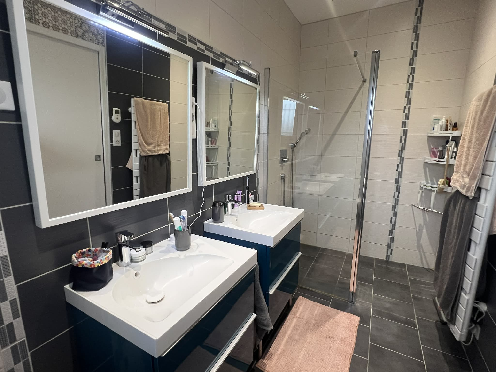 Ce niveau comprend également deux chambres, dont une suite parentale avec dressing et salle d'eau, ainsi qu'un bureau, une entrée, un cellier et un WC séparé avec lave-mains, permettant une véritable vie de plain-pied.