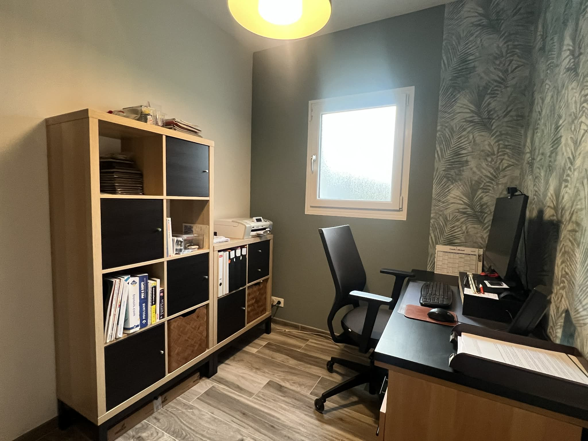 Ce niveau comprend également deux chambres, dont une suite parentale avec dressing et salle d'eau, ainsi qu'un bureau, une entrée, un cellier et un WC séparé avec lave-mains, permettant une véritable vie de plain-pied.