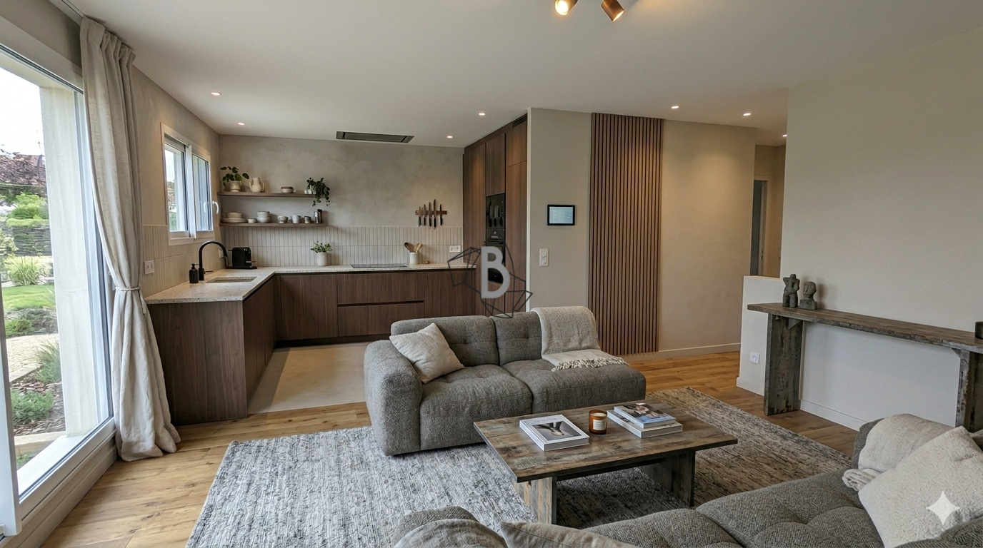 Exposée plein Sud, elle bénéficie d'une grande terrasse d'angle donnant sur un terrain de 1 400 m2. Construite selon la réglementation RE2020, elle offre un excellent confort thermique et de faibles consommations énergétiques. Idéale pour une vie de famille alliant modernité, espace et qualité de vie.