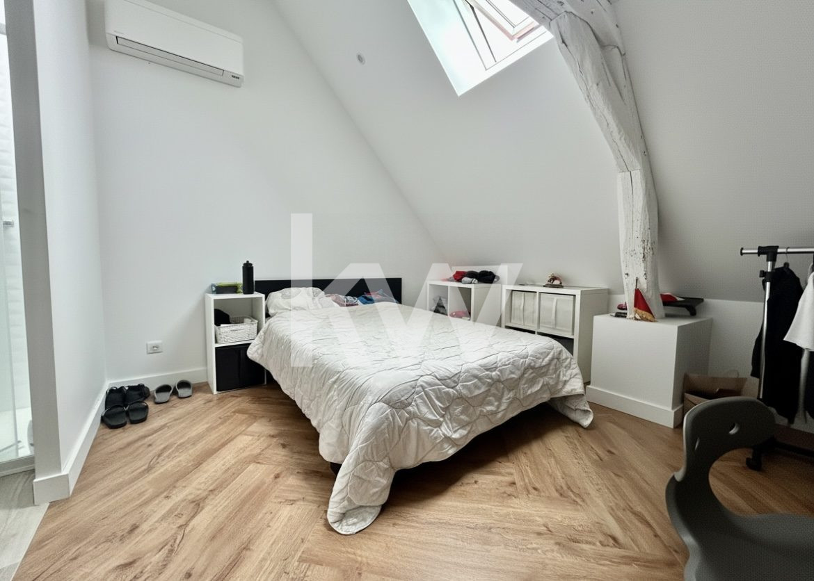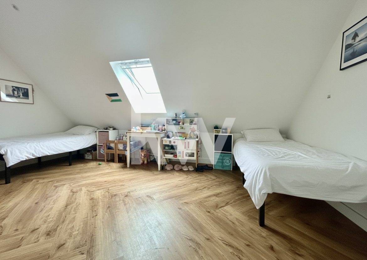 À l'étage, deux chambres, un dressing, une salle d'eau et des toilettes.
