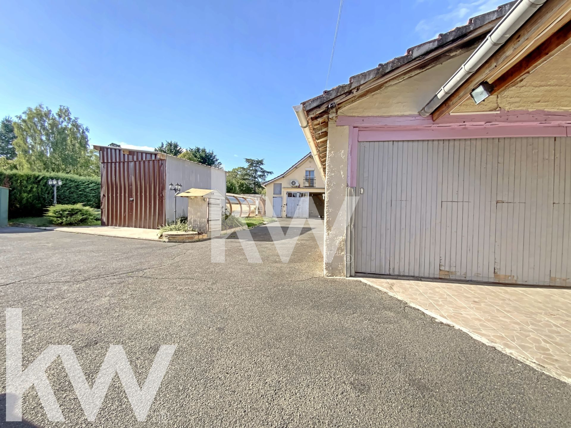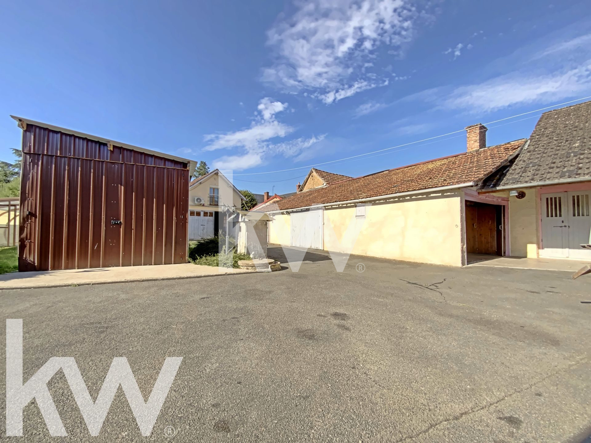 On trouve également un hangar en tôle de 40m2 environ d'une hauteur de plus de 2,80 m, un autre garage de 60m2, ainsi qu'un bâtiment avec un garage de 33m2 au rez-de-chaussée et un logement à l'étage composé d'une pièce et d'une salle d'eau avec WC.