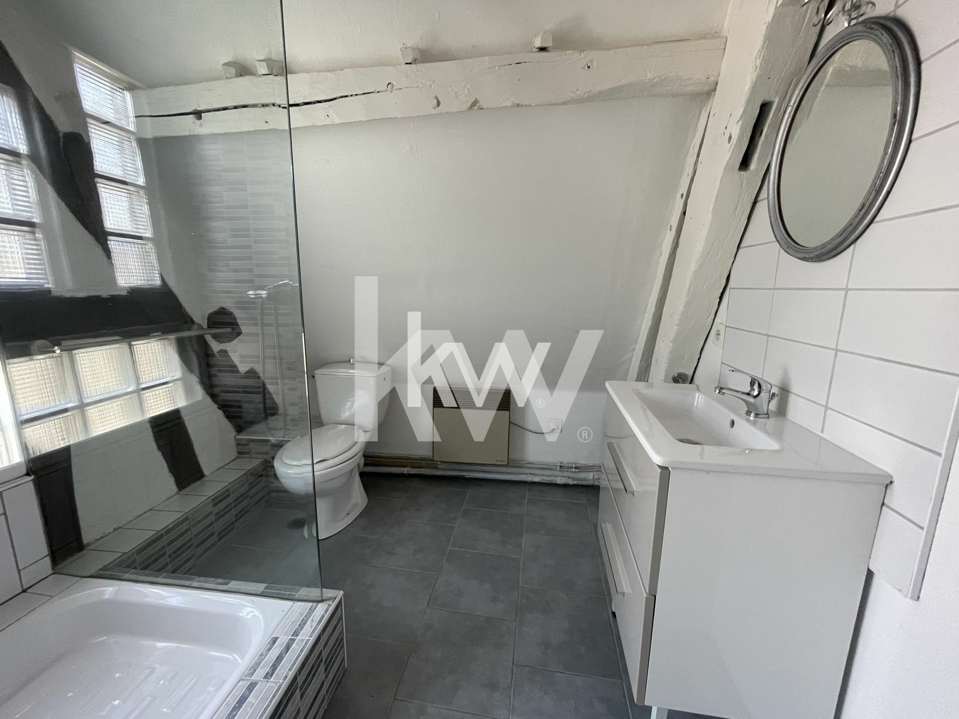 Cette maison ancienne, répartie sur trois niveaux, ne manque pas de caractère et de charme. Dès que vous franchirez la porte d'entrée au rez-de-chaussée, vous serez accueilli par le charme des poutres apparentes, qui confèrent à cette maison une ambiance chaleureuse et authentique. Cependant, il est important de noter que cette maison ne possède ni cour, ni garage, ni jardin.